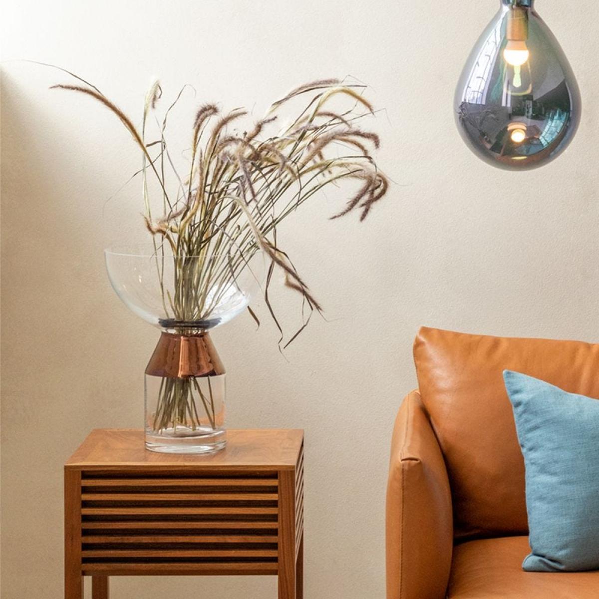 I love the Tom Dixon tank vase for its sleek, contemporary design and versatile aesthetic. Its bold brass detailing adds a touch of luxe, making it ideal for modern, minimalist, or industrial interiors. It works well as a statement piece on sideboards or coffee tables, especially when paired with simple greenery or single-stem blooms to highlight its sculptural form. For styling tips, try layering it with different sized vases in a collection or using it as a centrepiece with bold, architectural flower arrangements to maximise its visual impact. Its transparent glass base also lends itself to pairing with softer colours or textured decors, ensuring it complements a variety of interior styles effortlessly.