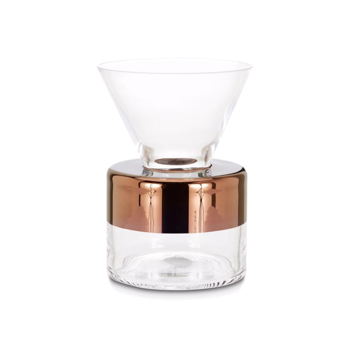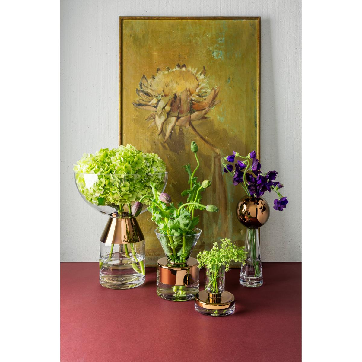 I love this piece for its contemporary take on a classic vase form, with the copper detailing adding warmth and a subtle luxe feel. It works well in minimalist or industrial-style interiors, where its clean lines can contrast nicely with raw materials, or in more eclectic schemes to introduce a touch of elegance. Practical styling tips include using it as a standalone statement piece or pairing it with dried stems or simple greenery for a modern, understated look. Its medium size makes it versatile for side tables or open shelving, and the copper accent helps to tie together other metallic elements in the space.