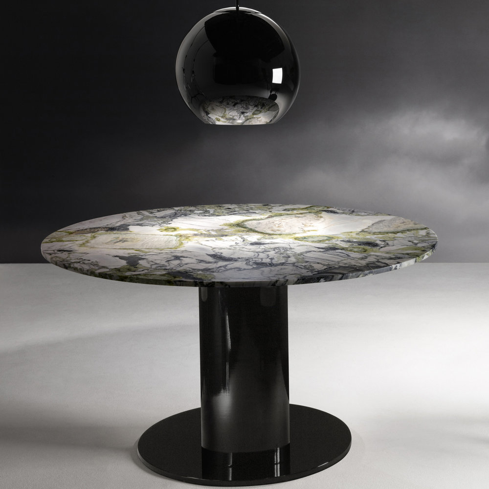 This dining table from Tom Dixon features marble that’s been quarried in Yunnan’s majestic landscapes. Unusual due to its extreme random figuring and bold pattern, it alternates between bright green markings and thin black veining making each piece completely unique.
