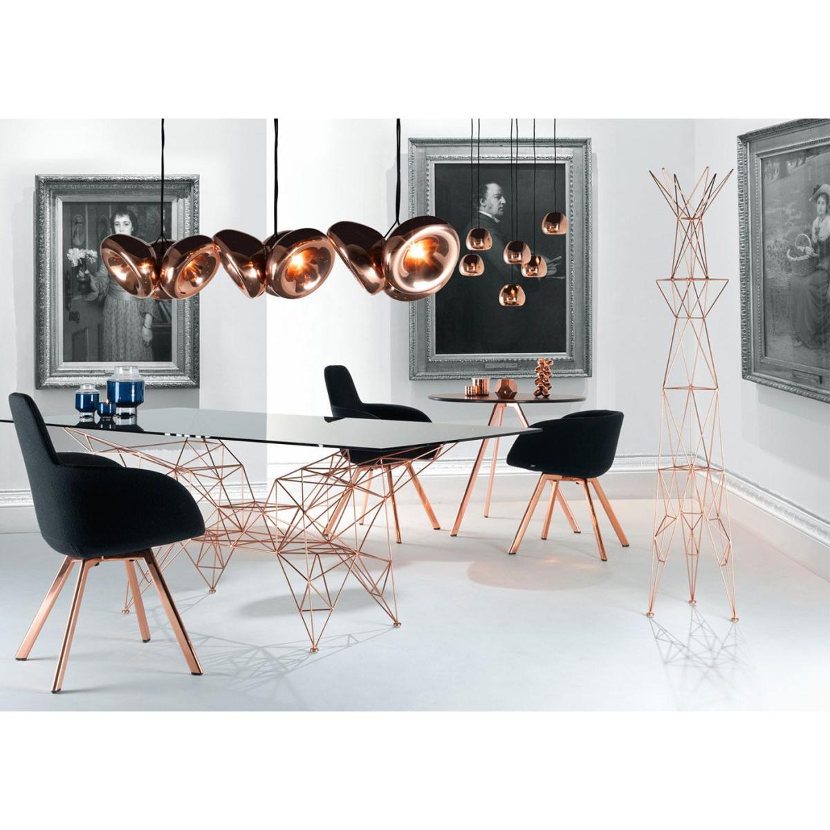 A unique double walled design, the Void is inspired by the metallic lustre of Olympic medals. Using a complex process of pressing, spinning and brazing solid sheets of stainless steel, this pendants high gloss surface manages to create both a mirrored and translucent finish. Now available with Tom Dixon’s custom-made integrated LED ring, which uses less energy and won’t need replacing for up to 15 years