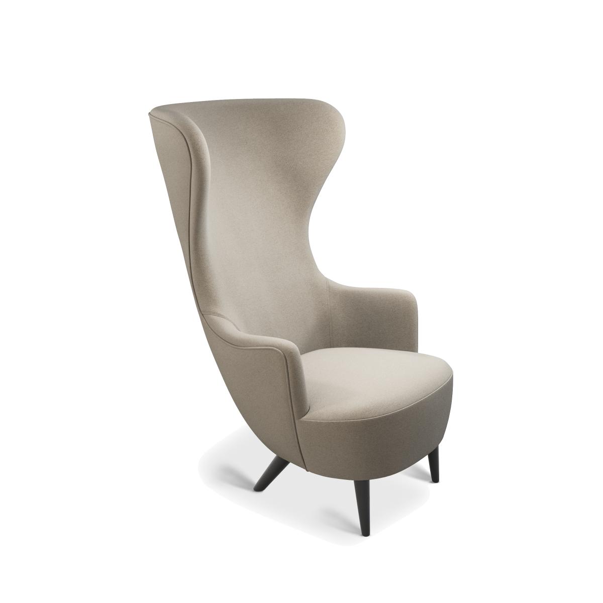 Wingback is Tom Dixon's much appreciated armchair with its expressive sweeping curves that act as a sculptural intervention. This armchair is upholstered using Kvadrat's Hero 0211 wool fabric and features Black Oak legs. The wings provide convenient acoustic protection for mobile phone use and a headrest for quick snoozes.