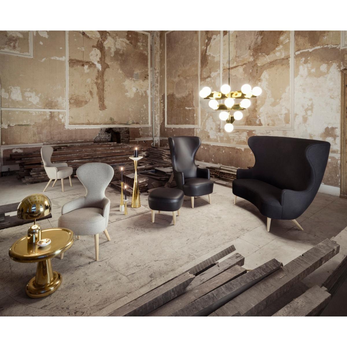 Micro Wingback is Tom Dixon's much appreciated sofa with its expressive sweeping curves that act as a sculptural intervention. This sofa is upholstered in Wool and available in a variety of colours and leg options. The wings provide convenient acoustic protection for mobile phone use and a headrest for quick snoozes.