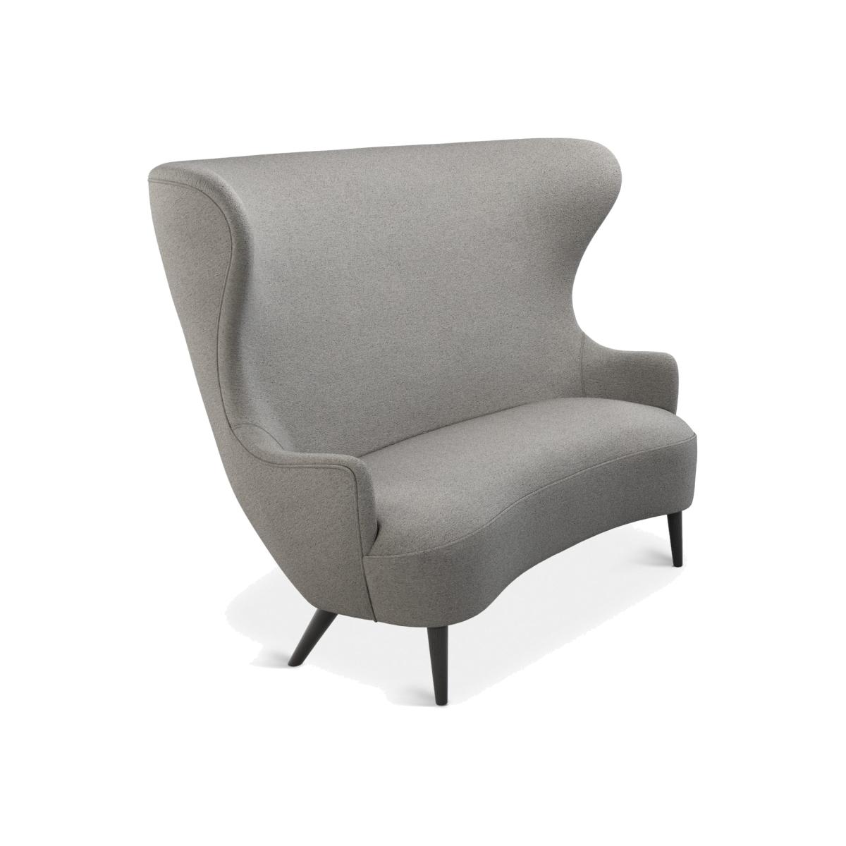 Wingback is Tom Dixon's much appreciated sofa with its expressive sweeping curves that act as a sculptural intervention. This sofa is uphosltered using Bute's grey woolen fabric and features black legs. The wings provide convenient acoustic protection for mobile phone use and a headrest for quick snoozes.