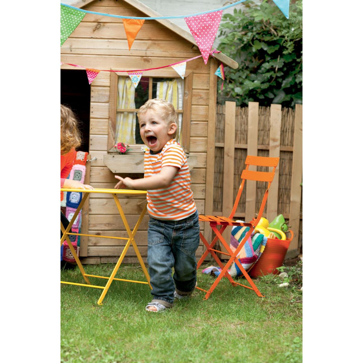 "The Bistro chair has been miniaturised, so that everyone – big and small – can enjoy it! It's impossible not to fall for this ""mini"" Bistro, made from metal and available in a host of bright colours: Lemon, Poppy or Grass Green for the boys. And Fuchsia, Carrot and Verbena for the girls!".