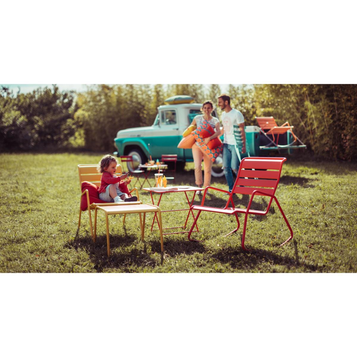 Colourful and easy-going, this small "bistro" type coffee table is also at ease in a lounge or on a terrace! Its understated look goes perfectly with any style of furniture: you can, for example, combine it with the Dune or Alizé sun loungers from Fermob. It is also the ideal companion to the Luxembourg Kid chair. Available in jolly and vibrant tones, it creates a festive atmosphere. The multitude of colours offers you so many options to create your outdoor decoration.