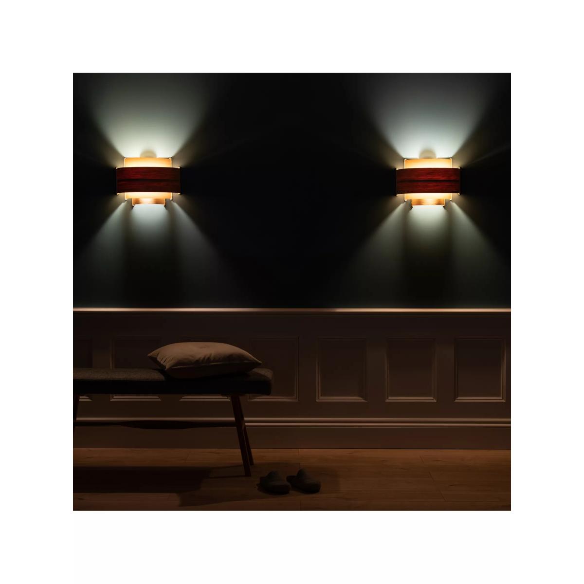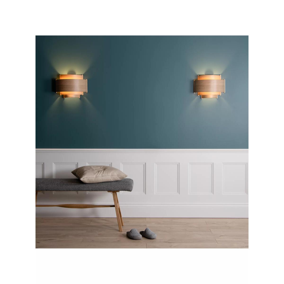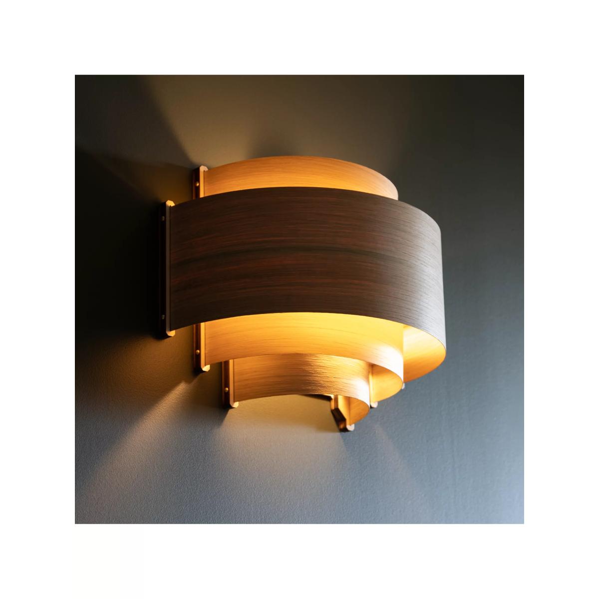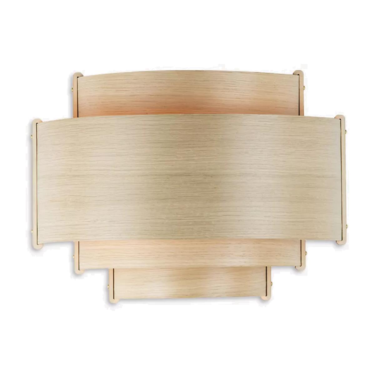 Leven, meaning 'level' in Cornish, this wall light showcases Tom Raffield's signature curved wood design motif and is handcrafted using four tiers of curving oak or walnut timber that tautly wrap around a central plywood frame. Each layer of wood builds a balanced silhouette of careful craftsmanship. With a blend of Scandinavian and Art Deco aesthetics, use the wooden Leven wall light to illuminate hallways, living spaces and bedrooms alike as the versatile downlighting effect is suited to an array of interiors. Good to know This light mounts directly on to the wall. It comes with a terminal block (without a plug or switch), ready to be hardwired into mains electric.