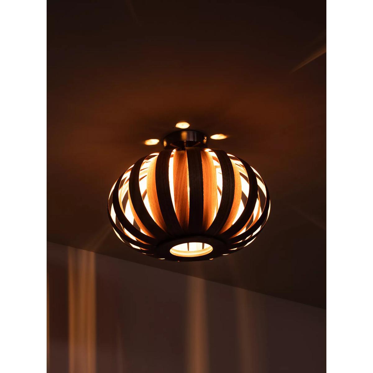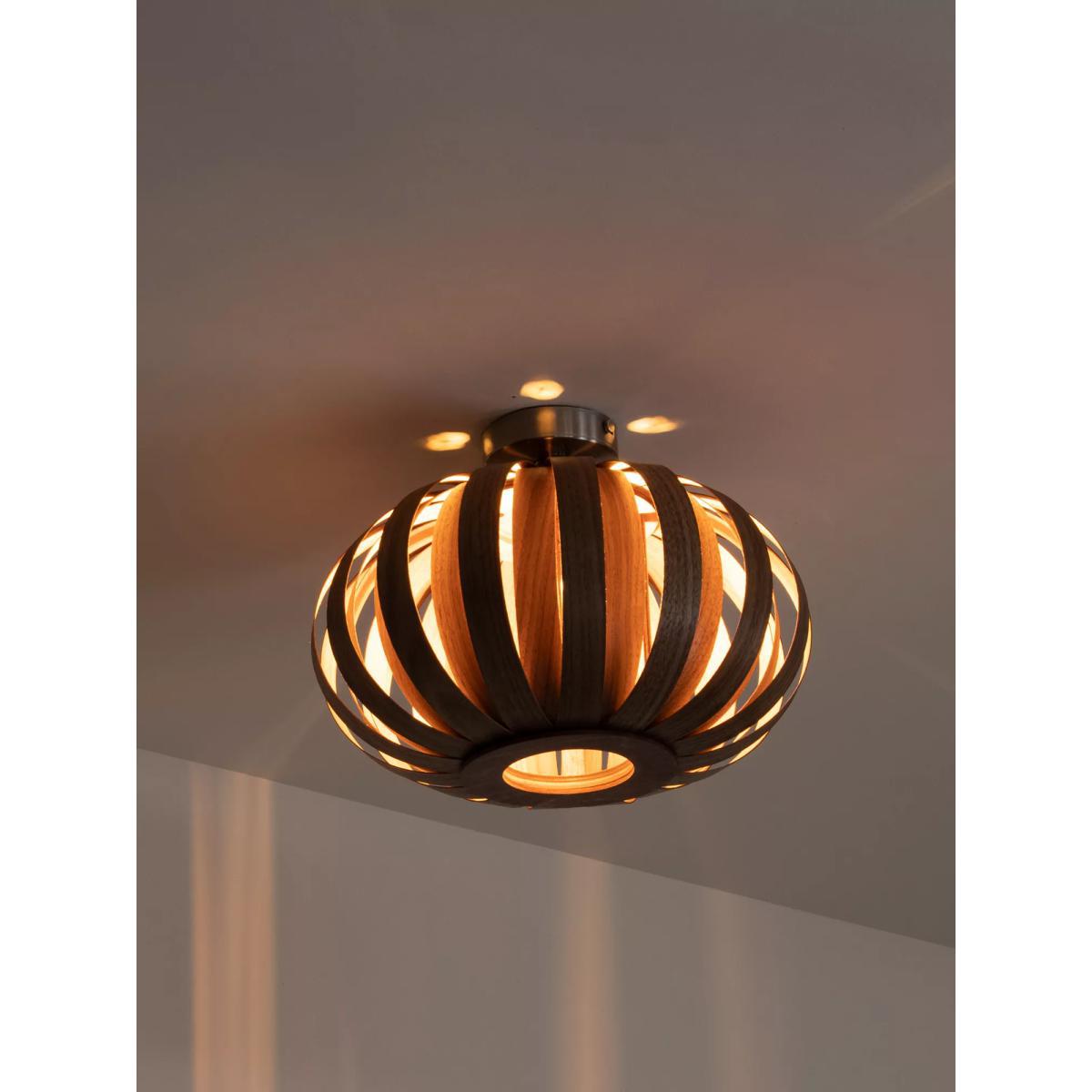 Taking inspiration from the shells found scattering the shorelines of the Cornish beaches that surround Tom Raffield's studio, this ceiling light will softly illuminate your space with pools of brightness. It's made from responsibly sourced oak or walnut and formed from 32 curved plates to create its distinctive arched shade. Each plate of timber is laser-cut and conceals the bulb that's set within, allowing light to spill through. As a small flush fitting, it's well-suited in rooms which have a low ceiling. It's also perfect for giving your space a warm and natural feel. This lighting collection is made using naturally treated timbers that are finished with a subtle, water-based satin varnish. This ensures a durable finish that's easy-to-care for and doesn't compromise the natural beauty of the wood grain.