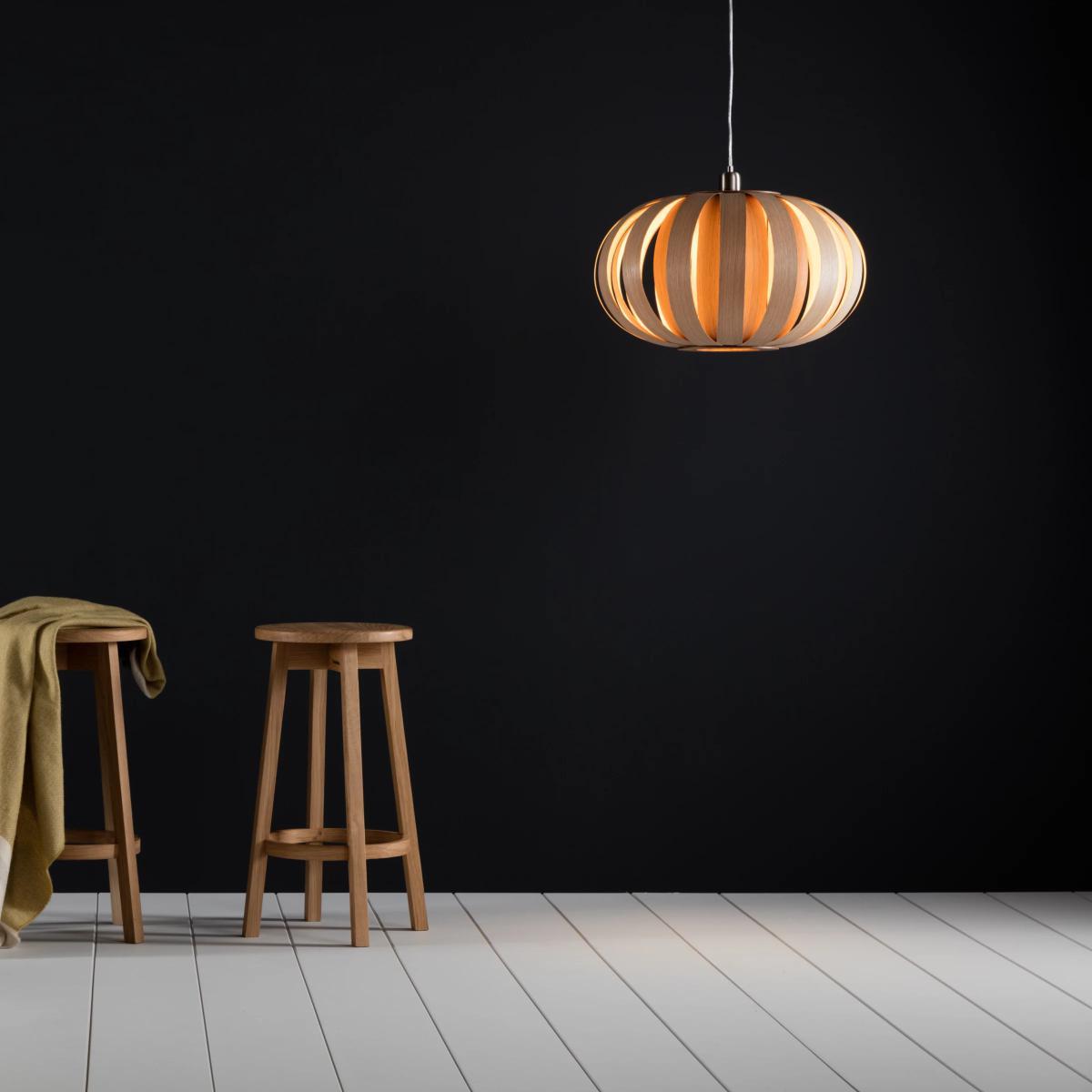 Made in the UK The Urchin Pendant Light is inspired by the empty shells of the Sea Urchin 'Echinus esculentus', a creature who inhabits the Cornish coast line. Designed to completely conceal the bulb, the spherical form of this wooden pendant light is made up from steam-bent strips of sustainably sourced wood and held by laser cut birch plates. The formation of the strips carefully conceals the light bulb whilst creating a beautiful lighting effect. Growing up surrounded by the natural beauty of Exmoor, England, Tom Raffield was inspired at an early age by the unspoiled landscapes of his environment. Whilst studying at art school he developed an innovative steaming method which allowed him to manipulate a variety of wood types and bring his stunning designs to life. These contemporary pieces are heavily influenced by forms found in nature, and are constructed using sustainable materials and ecologically sound practices. Handmade in Cornwall, England, Tom Raffield’s exquisite collection of lighting and furniture offers a remedy to the current throw-away culture, and re-introduces the concept of the cherished collectable.