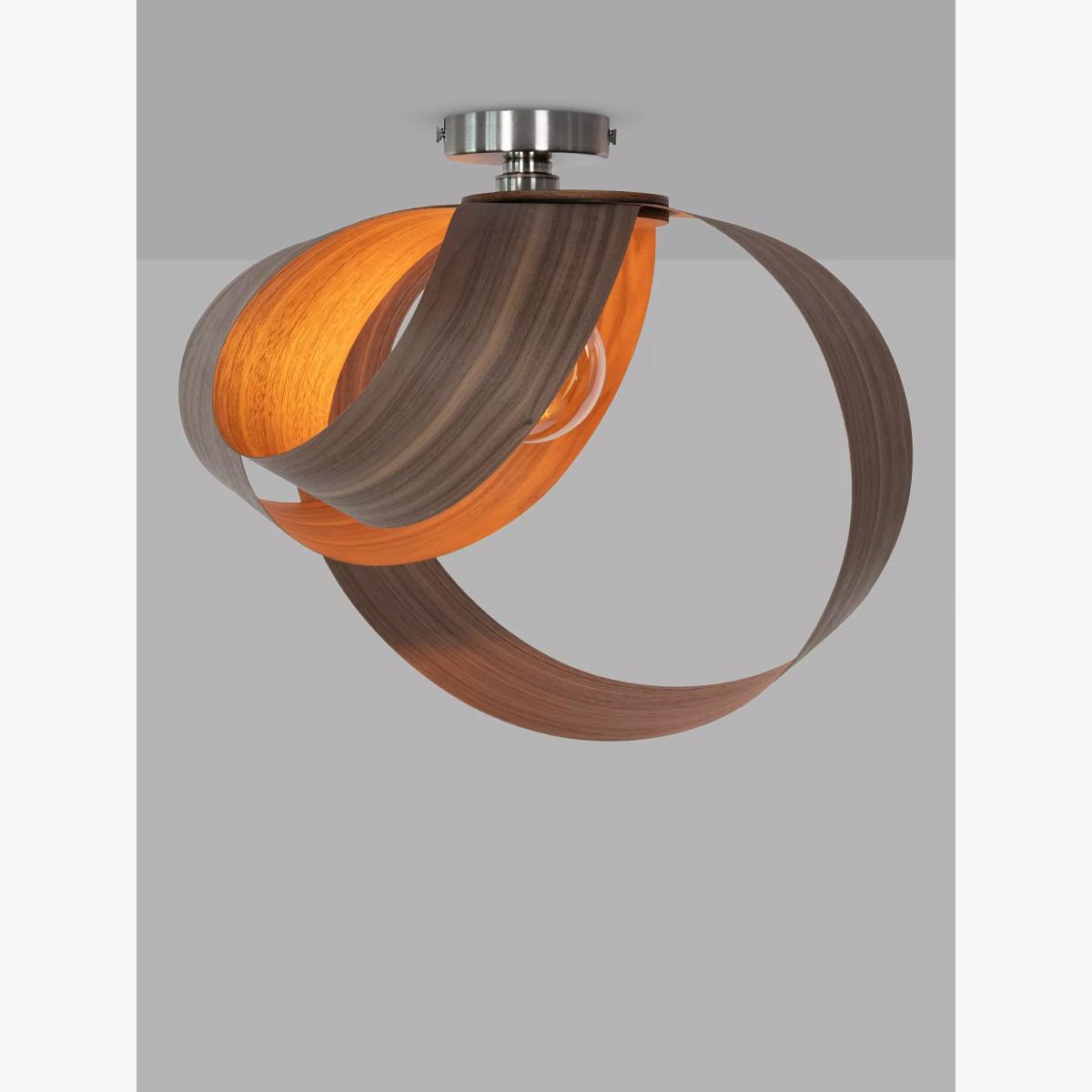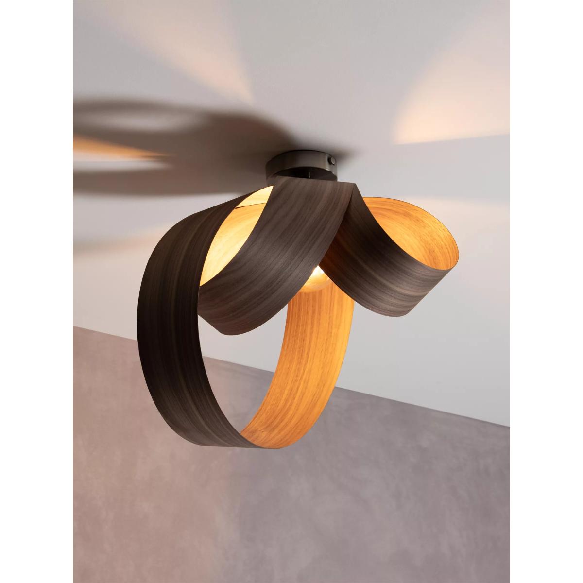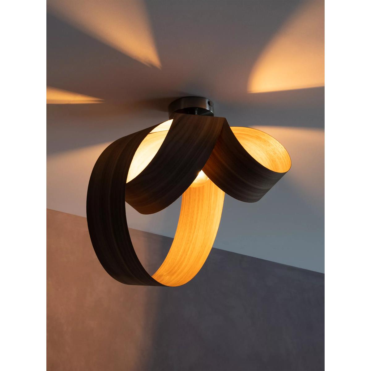 Forged from the Latin word to 'spin', Tom Raffield's sculptural Verso range showcases a blend of balance and light. Designed from one continuous length of oak or walnut that soars around the glow of an exposed bulb, its loops create eye-catching asymmetry inspired by the swooping motion of leaves falling in the wind. When illuminated, expect a combination of light and shadow to fill your space with ambience. It looks different from every angle and will add an abstract form and playful personality to your room. One LED bulb is required.