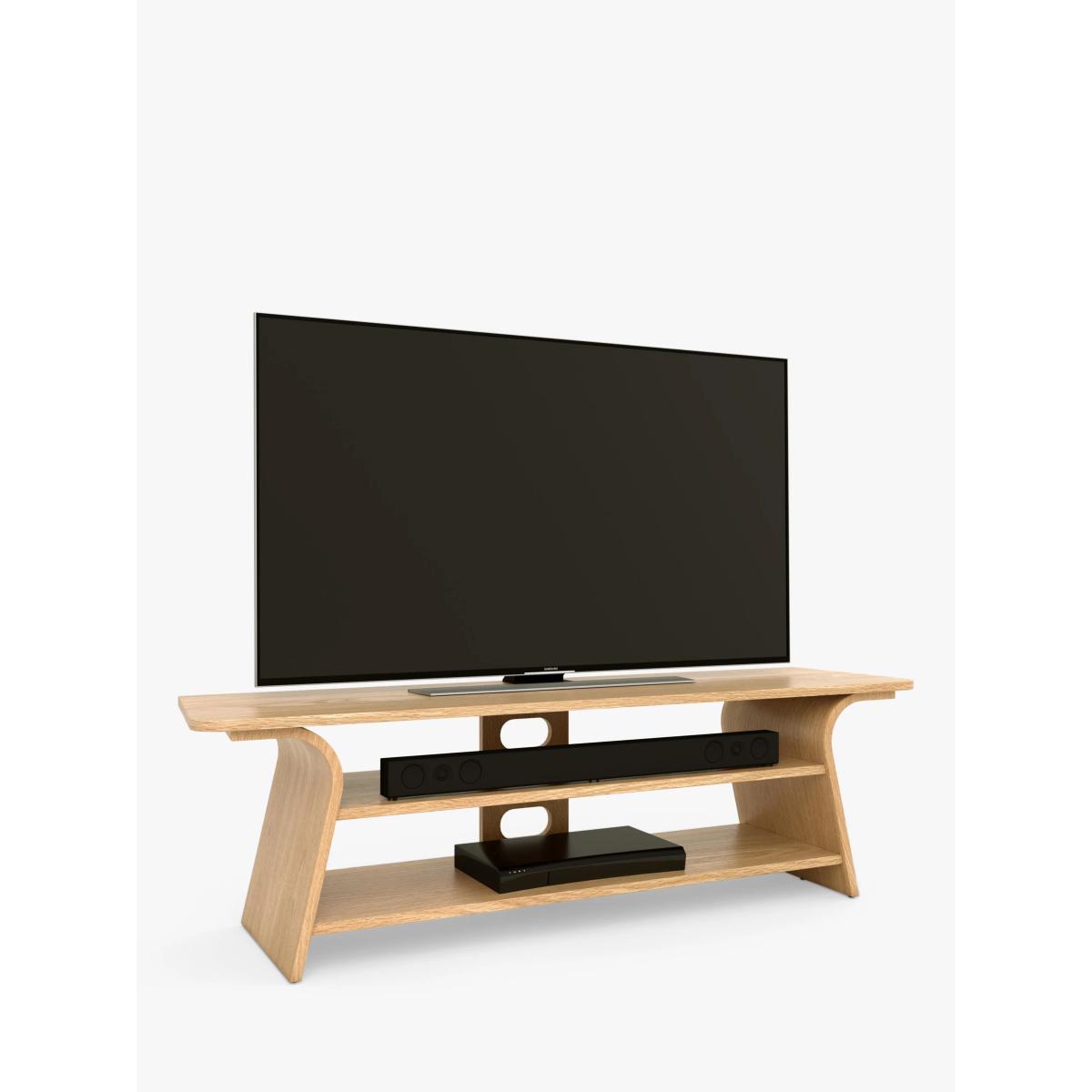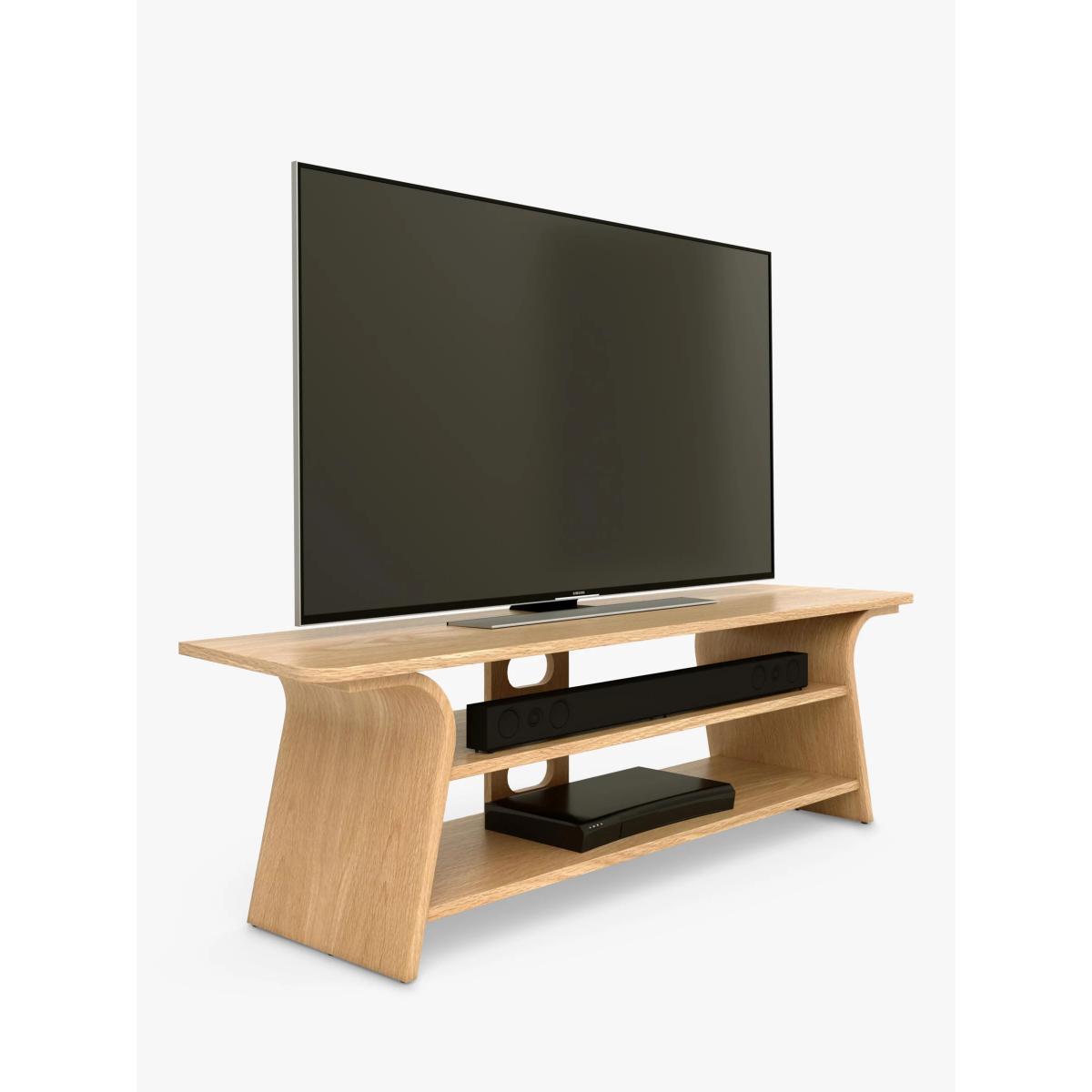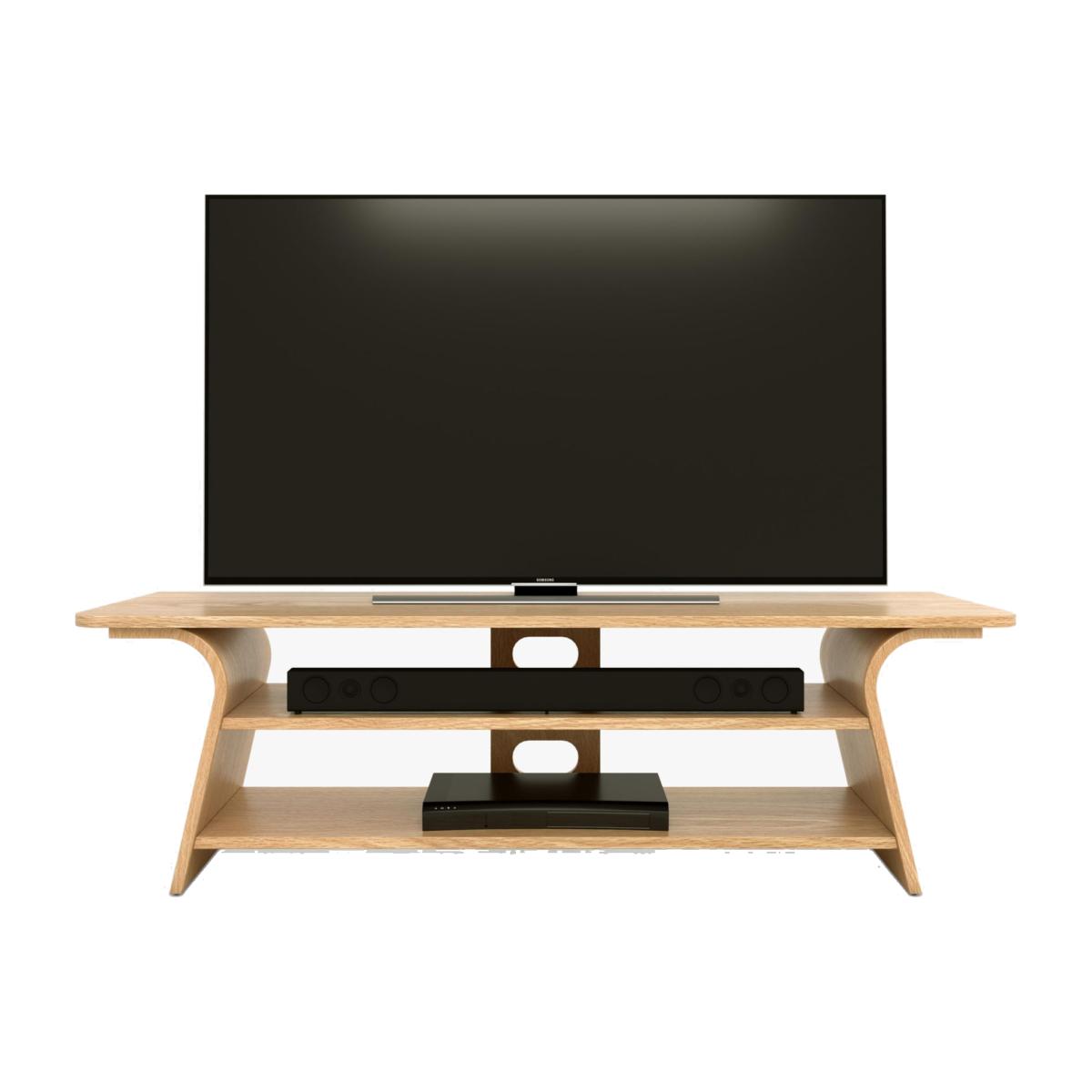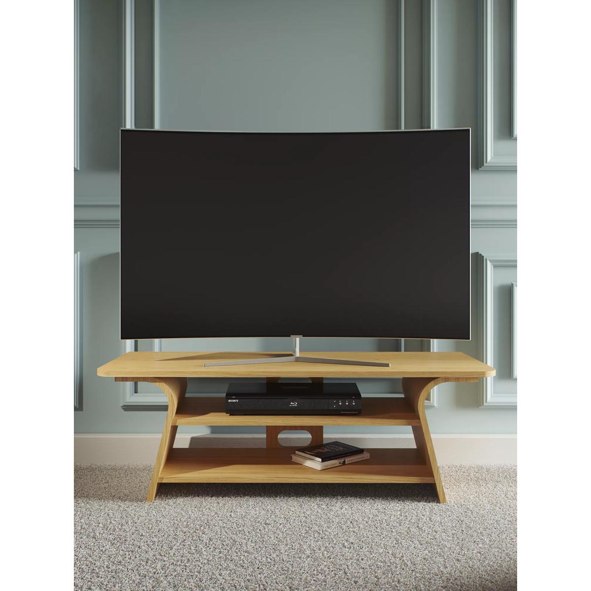 The Chloe TV stand offers a curvaceous twist on traditionally shaped TV units. It makes an elegant and classically minimal base for your home media set-up. Its softly curving legs complement the linear lines perfectly and will house your TV, media players and consoles in a design full of personality and practicality. Cable management features keep wires hidden from view, while full ventilation ensures free air circulation around your tech equipment. Handmade British design Natural wood veneer for uniqueness and beauty Maximum shelf weight: 45kg Shelf depth: 35cm Delivered fully assembled Please note: Any maximum TV size quoted is a recommendation only and the exact dimensions of the TV's pedestal/feet should be checked to ensure it fits prior to purchase.