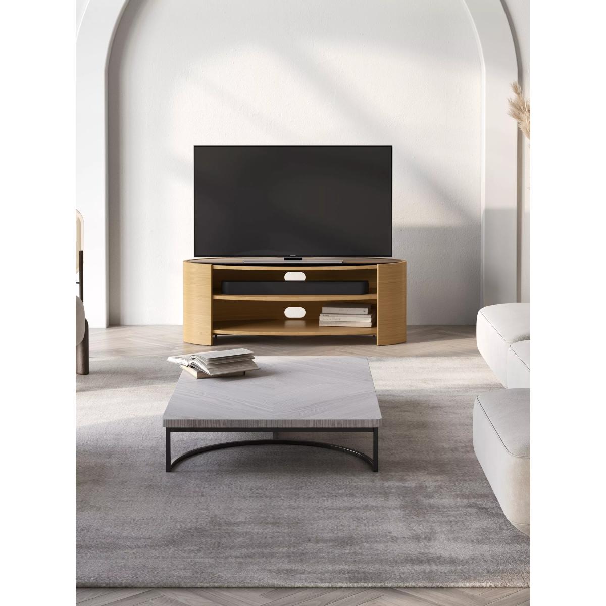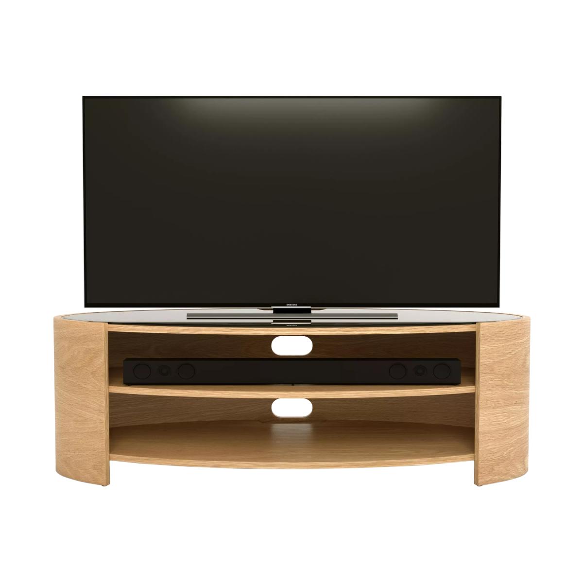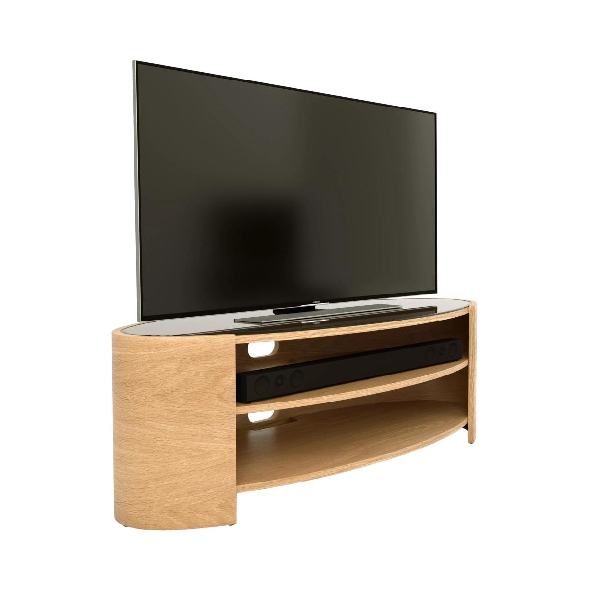 The Elliptic Deluxe media unit, with its elegantly curvaceous, open elliptical form, offers a striking organic contrast to the linear design of modern televisions. This media unit's toughened glass top complements the sophisticated silhouette, while integrated cable management, built-in ventilation, and sound bar space ensure seamless functionality. The unit's corner-positioning capability further enhances its adaptability to diverse living spaces. An adjustable middle shelf provides customizable storage for media components. Want to see it first? You may want to see and get a feel for the furniture in one of our shops before ordering. We'll be able to tell you where the range you'd like to view is on display.