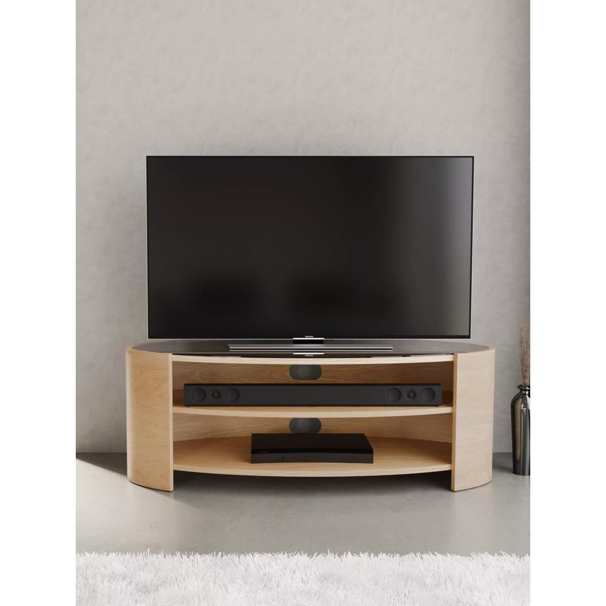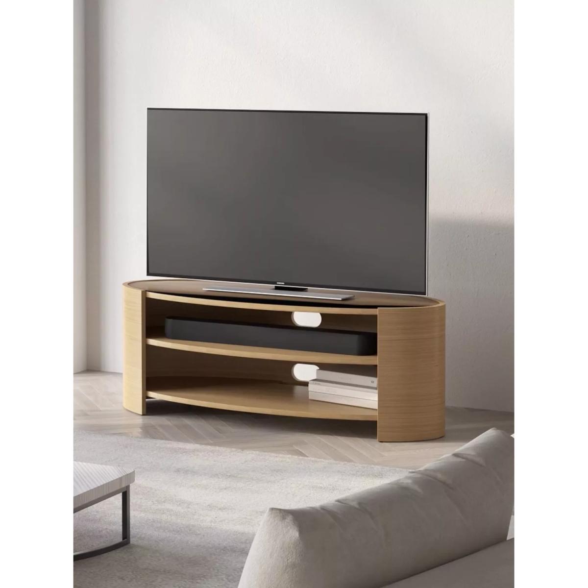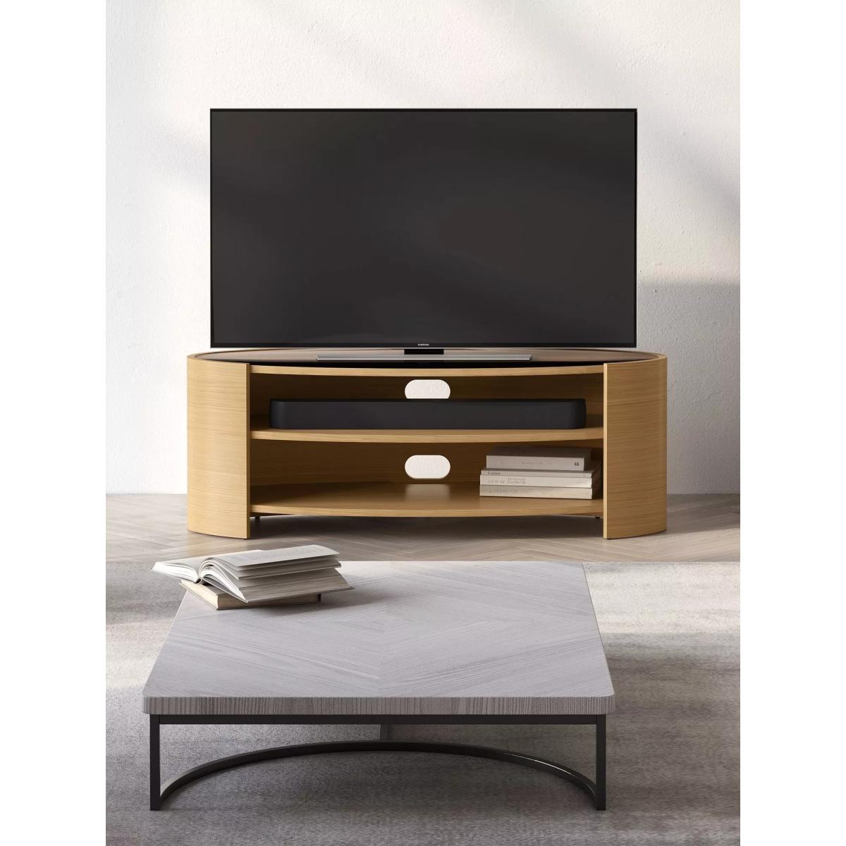 The Elliptic Deluxe media unit, with its elegantly curvaceous, open elliptical form, offers a striking organic contrast to the linear design of modern televisions. This media unit's toughened glass top complements the sophisticated silhouette, while integrated cable management, built-in ventilation, and sound bar space ensure seamless functionality. The unit's corner-positioning capability further enhances its adaptability to diverse living spaces. An adjustable middle shelf provides customizable storage for media components. Want to see it first? You may want to see and get a feel for the furniture in one of our shops before ordering. We'll be able to tell you where the range you'd like to view is on display.
