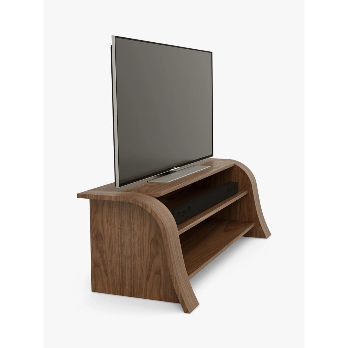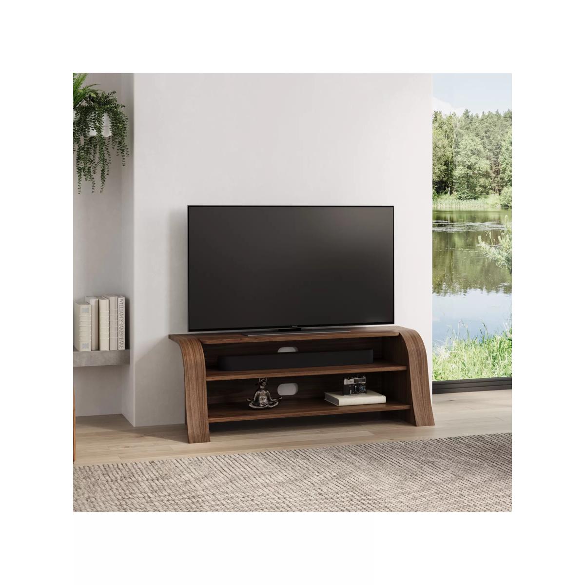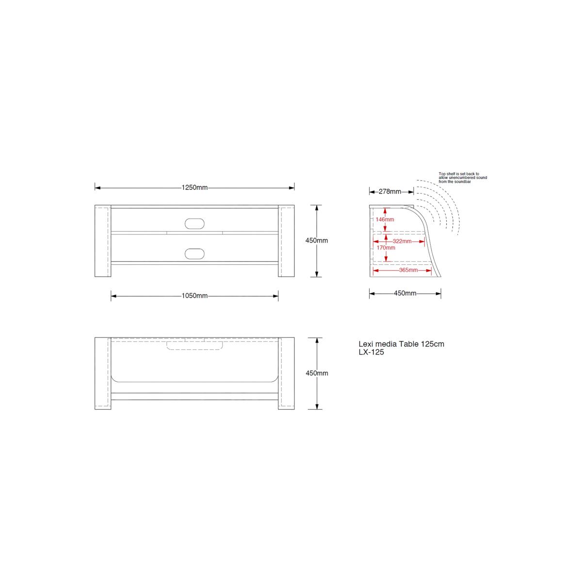 With delightful and contemporary design, the Lexi media unit's striking, curved shape invokes the meandering flow of water. Open shelves give it a minimalist appearance while offering ample storage space for media units. It’s designed with a set-back top which enables soundbars to project sound freely and unencumbered, while cable management keeps connecting wires tidy and hidden from view. Handmade British design Natural wood veneer for uniqueness and beauty Maximum shelf weight: 40kg Shelf depth: 36.5cm Designed for soundbars Delivered fully assembled Any maximum TV size quoted is a recommendation only and the exact dimensions of the TV's pedestal/feet should be checked to ensure it fits prior to purchase.