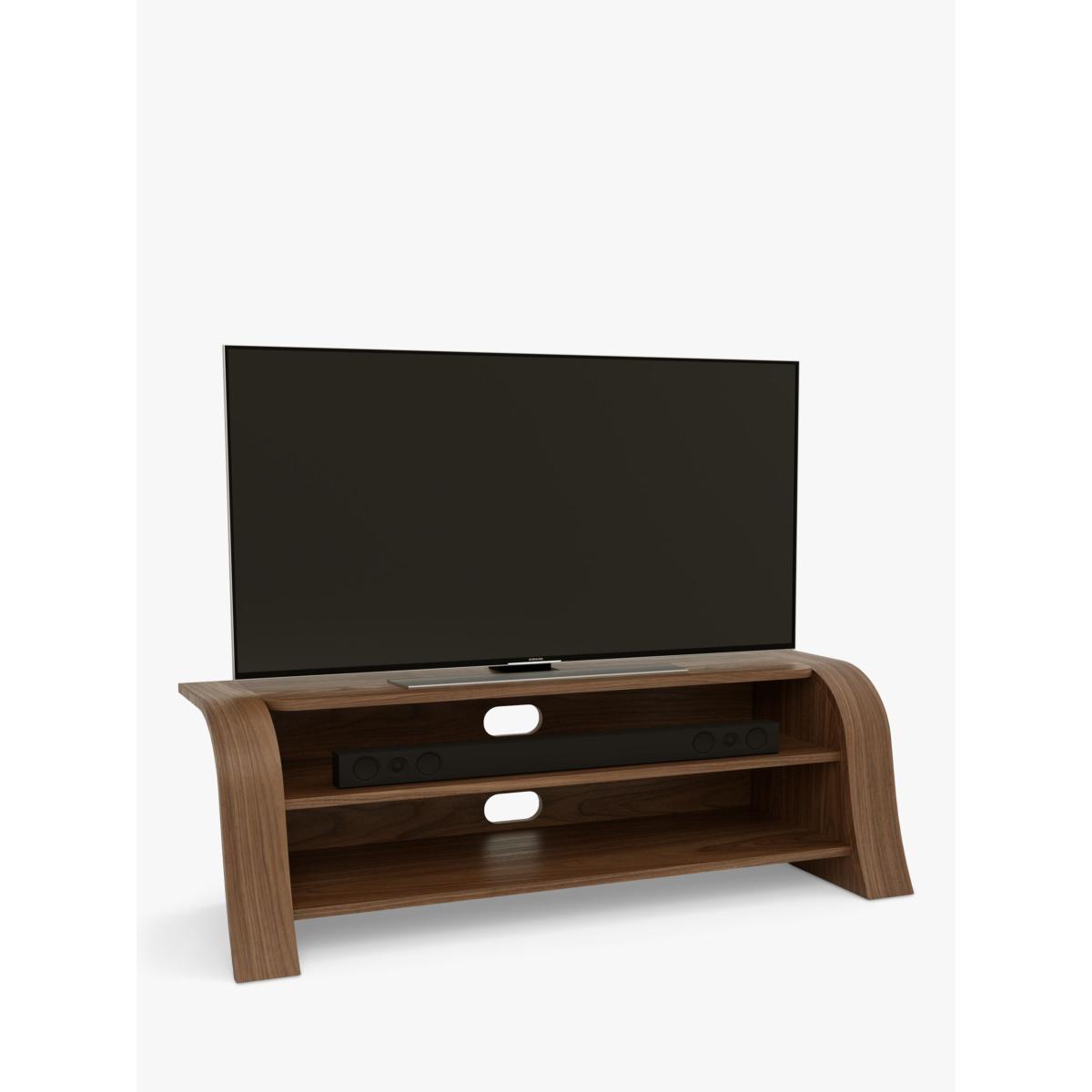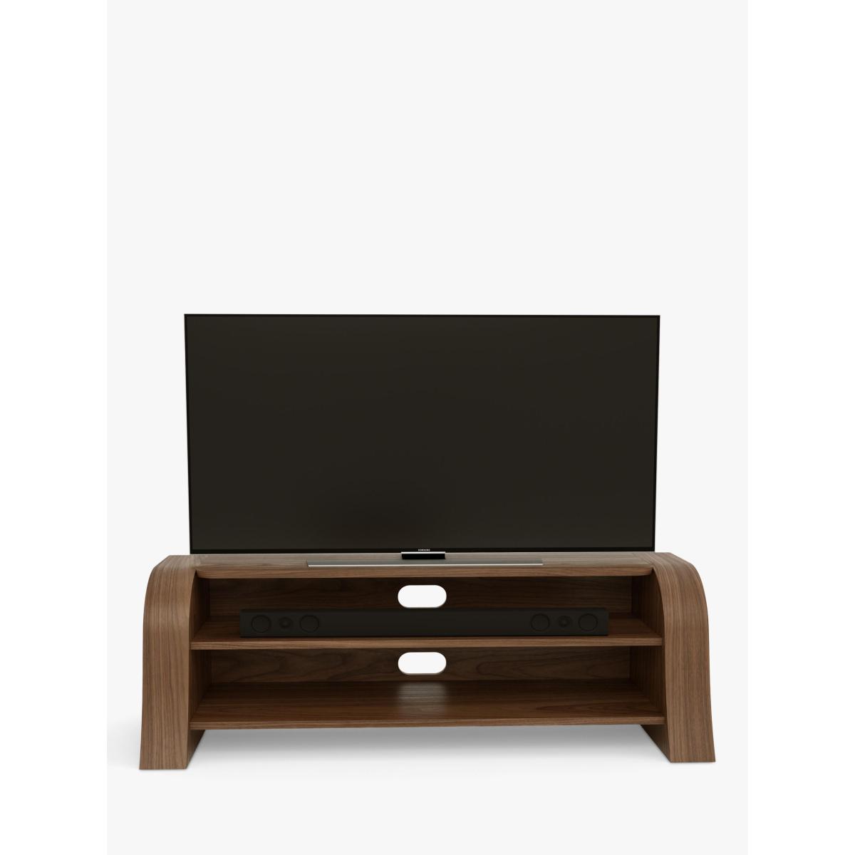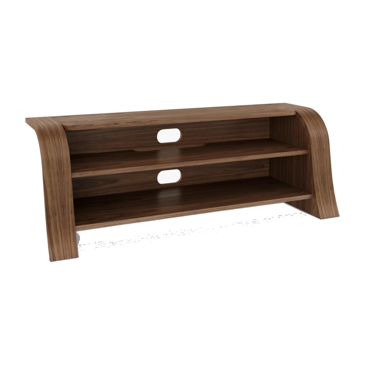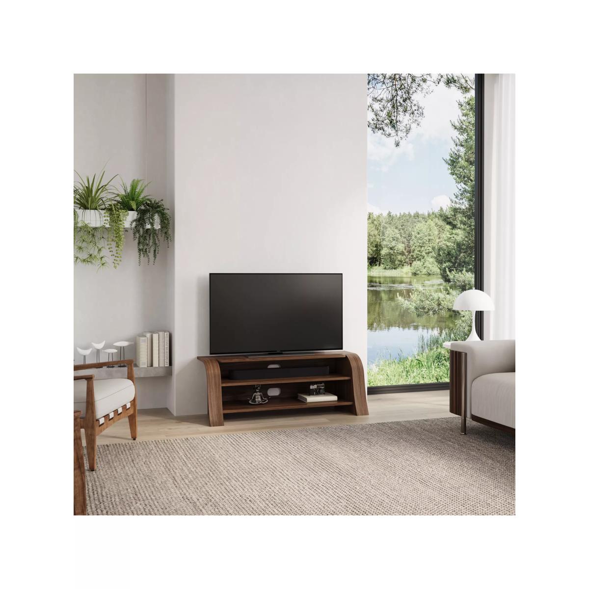 With delightful and contemporary design, the Lexi media unit's striking, curved shape invokes the meandering flow of water. Open shelves give it a minimalist appearance while offering ample storage space for media units. It’s designed with a set-back top which enables soundbars to project sound freely and unencumbered, while cable management keeps connecting wires tidy and hidden from view. Handmade British design Natural wood veneer for uniqueness and beauty Maximum shelf weight: 40kg Shelf depth: 36.5cm Designed for soundbars Delivered fully assembled Any maximum TV size quoted is a recommendation only and the exact dimensions of the TV's pedestal/feet should be checked to ensure it fits prior to purchase.