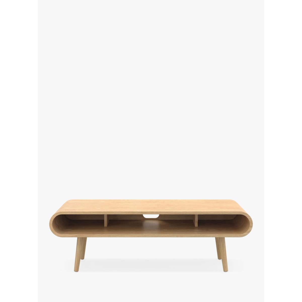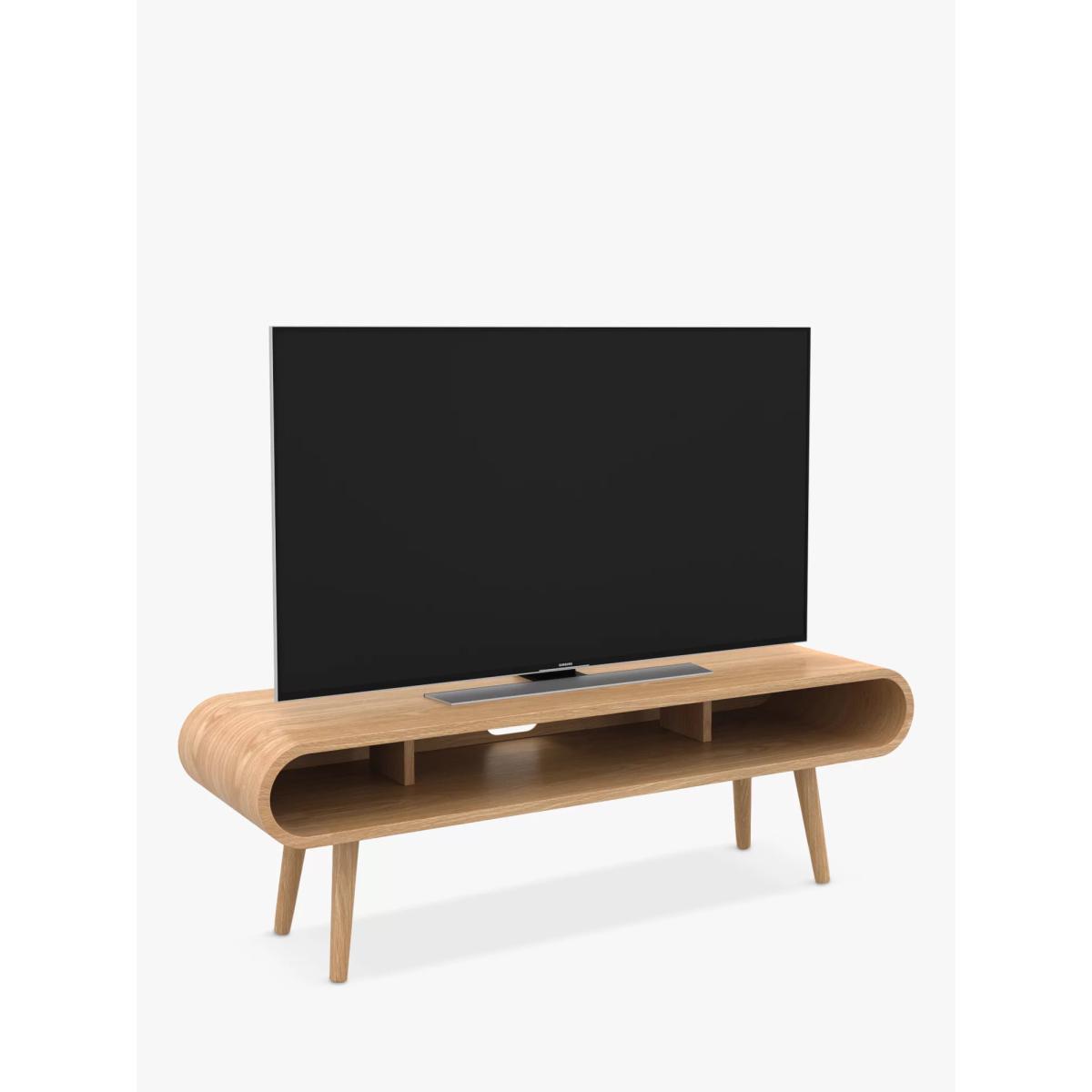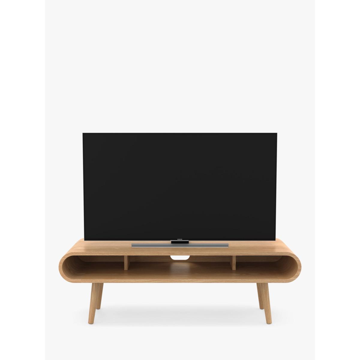This wonderfully simple design with classic curves really shows off the beauty of the natural wood. The Loopy media unit has ample storage for media units or a soundbar, and with cable management too, it's not only attractive but also a very practical media solution. Handmade British design Natural wood veneer for uniqueness and beauty Maximum weight: 30kg Shelf depth: 40cm Delivered fully assembled Please note: Any maximum TV size quoted is a recommendation only and the exact dimensions of the TV's pedestal/feet should be checked to ensure it fits prior to purchase.