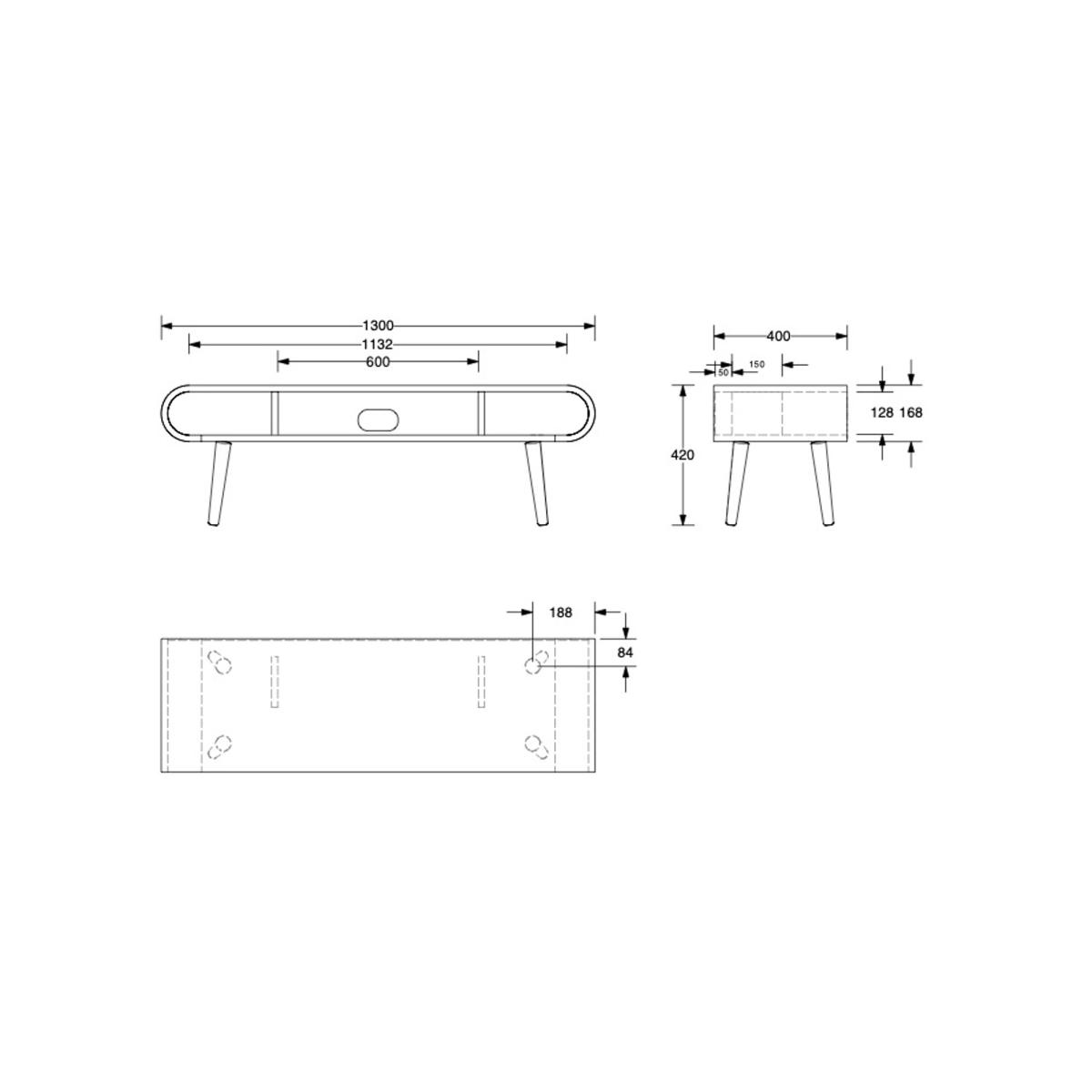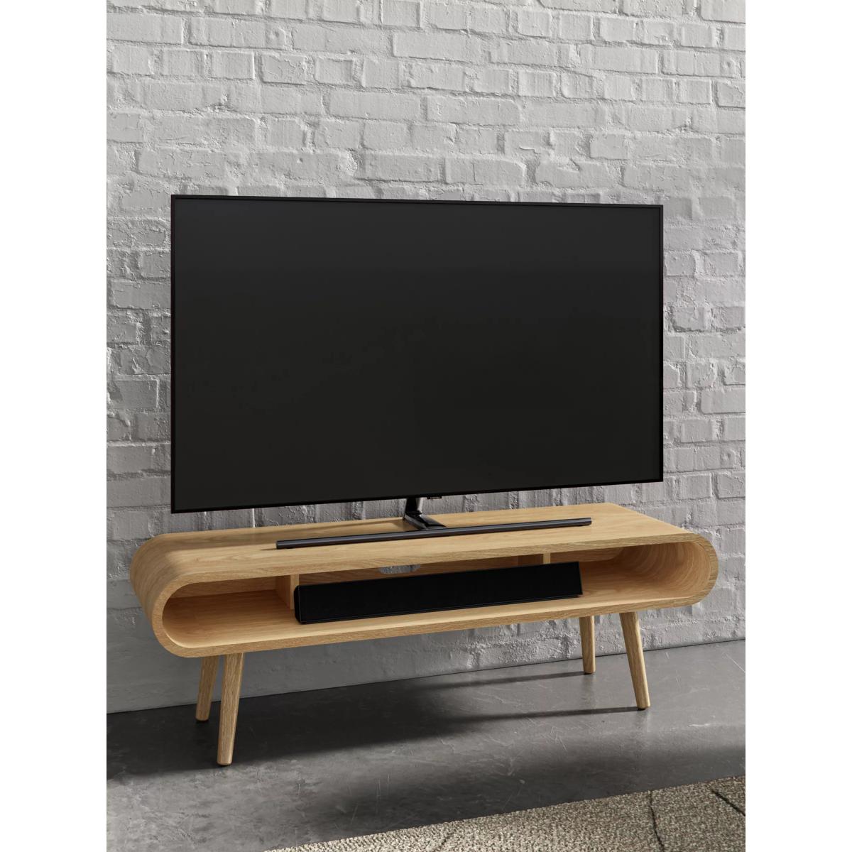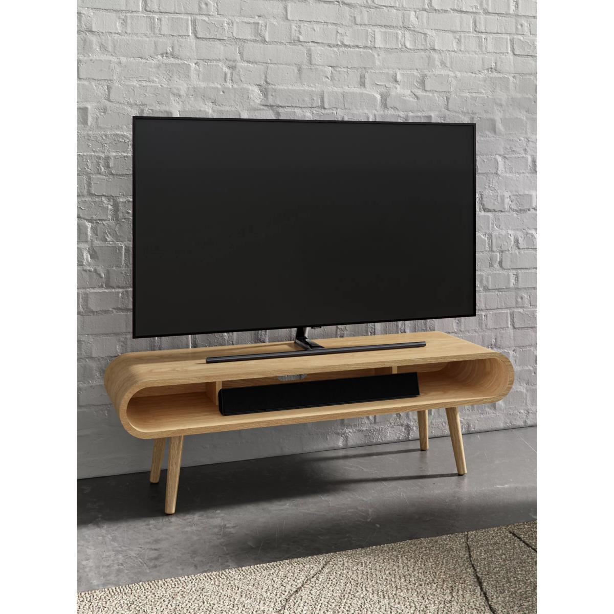 This wonderfully simple design with classic curves really shows off the beauty of the natural wood. The Loopy media unit has ample storage for media units or a soundbar, and with cable management too, it's not only attractive but also a very practical media solution. Handmade British design Natural wood veneer for uniqueness and beauty Maximum weight: 30kg Shelf depth: 40cm Delivered fully assembled Please note: Any maximum TV size quoted is a recommendation only and the exact dimensions of the TV's pedestal/feet should be checked to ensure it fits prior to purchase.