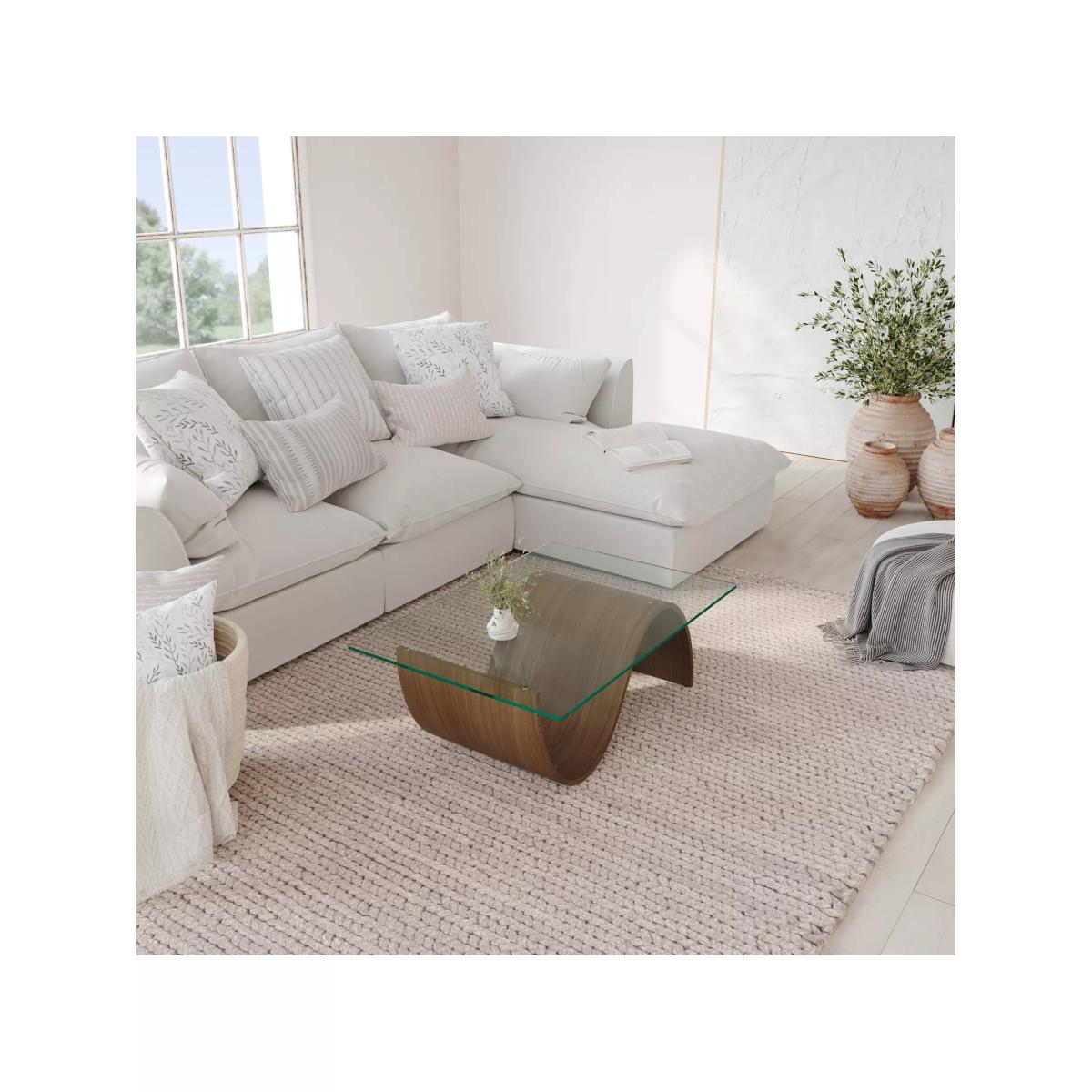I’m a fan of the Pulse table because its gently curving walnut base and clear glass top bring both warmth and lightness to a room without feeling fussy. It works especially well in contemporary, mid-century or Scandi-inspired interiors where clean lines and natural textures take centre stage. For styling, keep the look uncluttered: a stack of coffee-table books, a small low vase of foliage and a single decorative tray will highlight the table’s sculptural form while still feeling functional. Pair it with a streamlined sofa in muted tones and a textured rug to balance the smooth wood grain and glass surface.