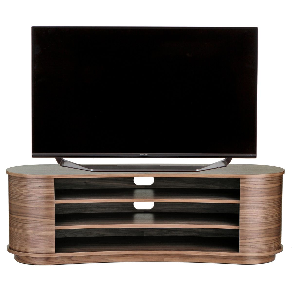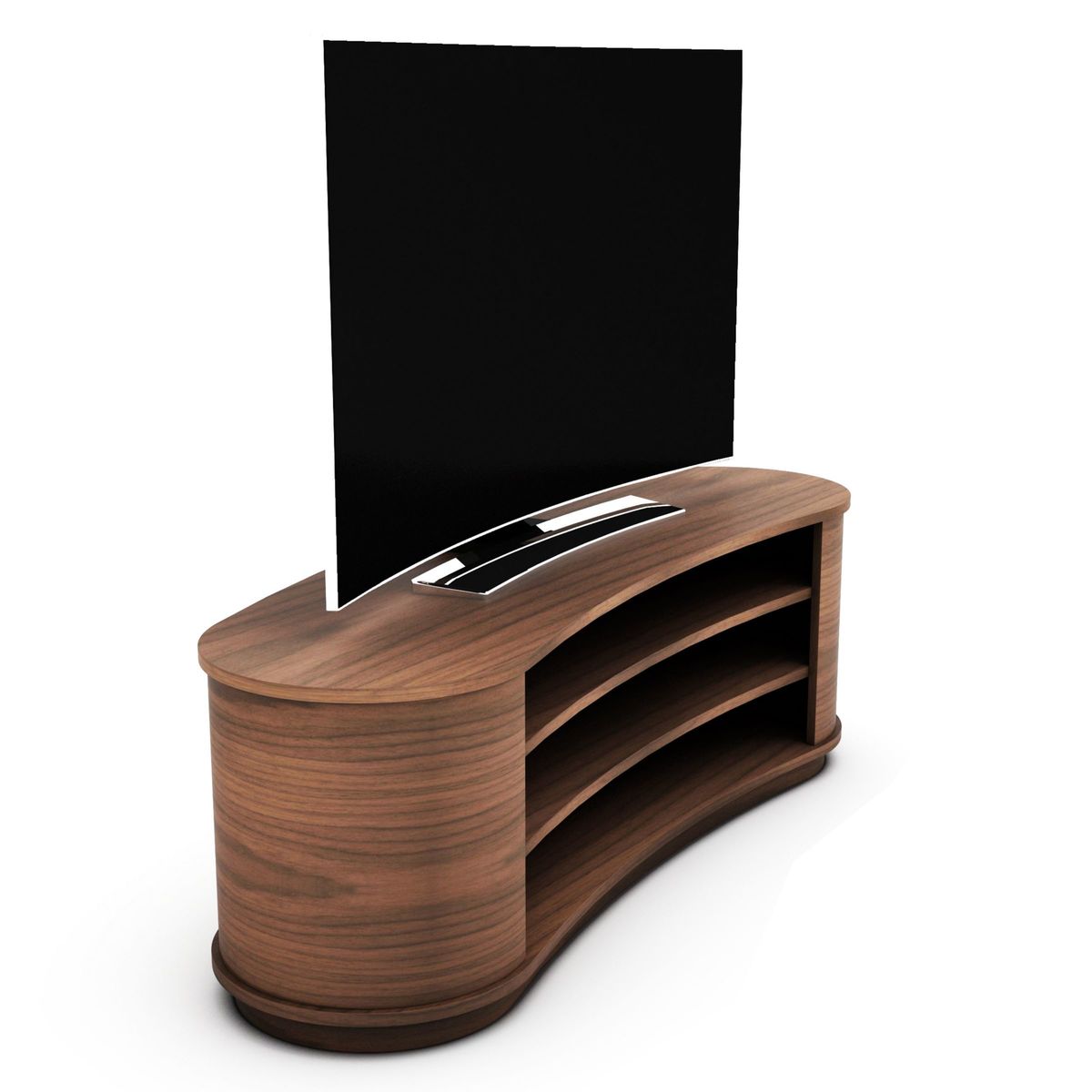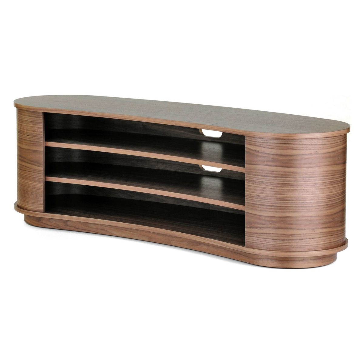 A wonderfully playful yet practical design, the Radius Home Theatre's elegant curve at the front flows through the sides and is mirrored at the back, giving this unit an all round radiating wow factor. It makes an elegant and classically minimal base for your home media set-up. The fixed shelving provides space for a sound bar and your audio-visual equipment, it's a modern option that perfectly balances style with practicality. Cable management features keep wires tidy and hidden from view. Handmade British design Natural wood veneer for uniqueness and beauty Maximum shelf weight: 50kg Shelf depth: 38cm Delivered fully assembled Please note: Any maximum TV size quoted is a recommendation only and the exact dimensions of the TV's pedestal/feet should be checked to ensure it fits prior to purchase.