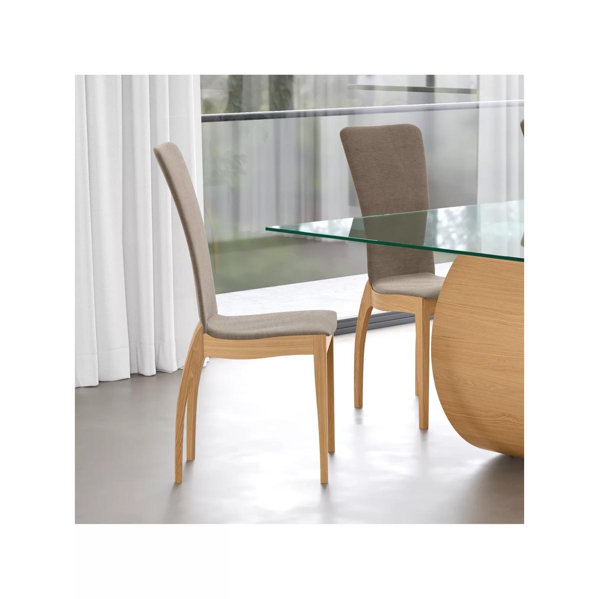 This is a wonderfully elegant chair design with a slender back that gently curves outwards providing comfort as well as style. Formed from solid oak, it features a fully upholstered back and seat with curved legs for a truly inspired design. The back is flexible which provides an added level of comfort especially when seated for long periods. Want to see it first? You may want to see and get a feel for the furniture in one of our shops before ordering. We'll be able to tell you where the range you'd like to view is on display.
