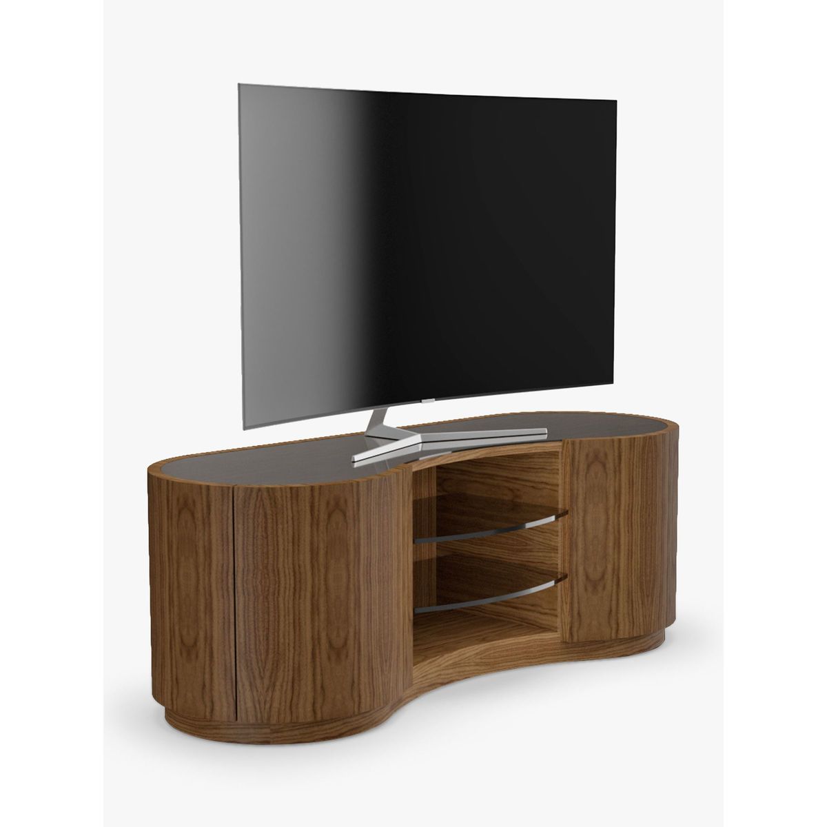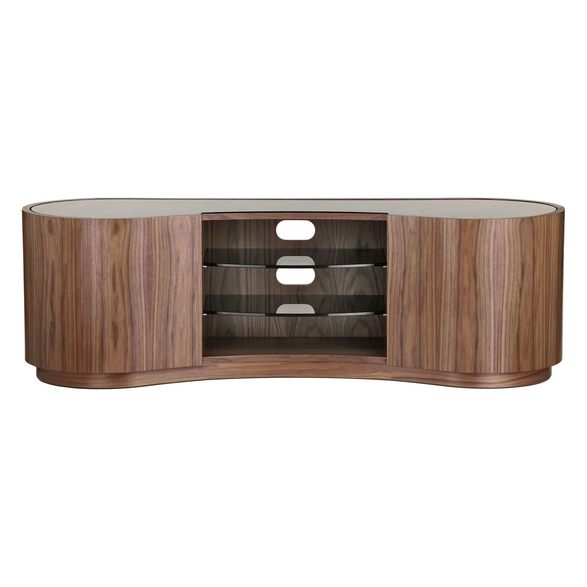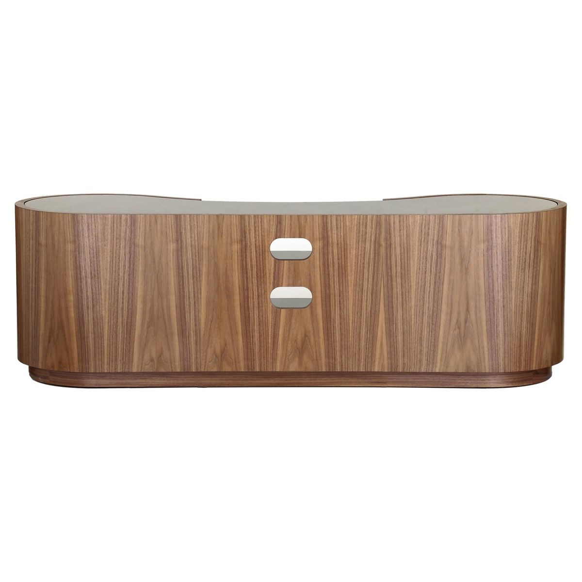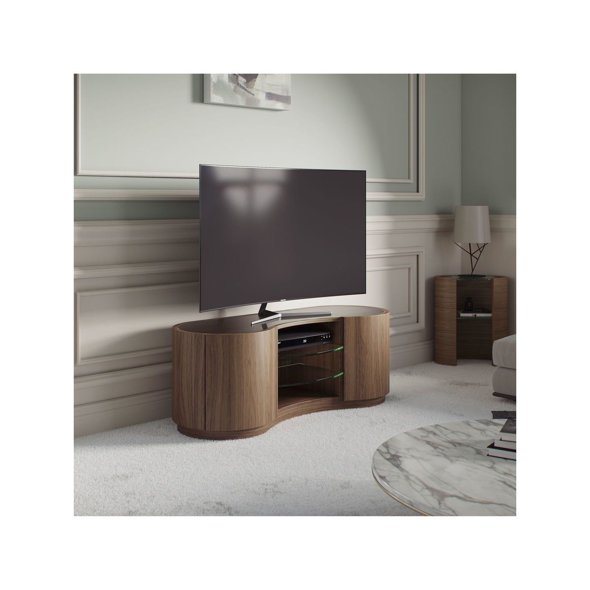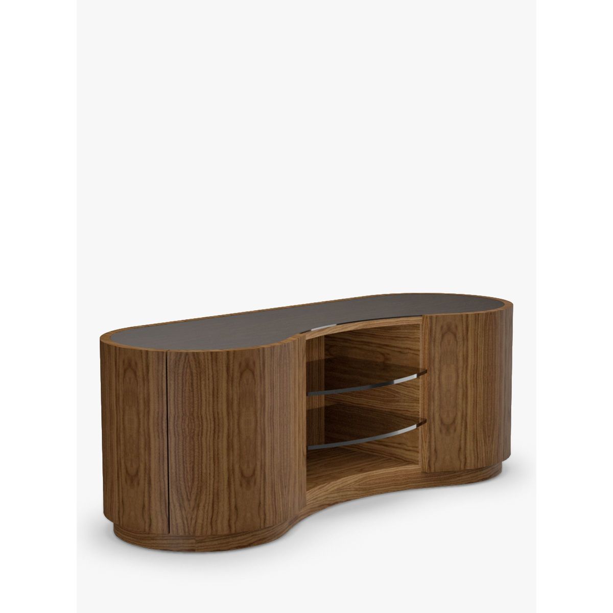 The Swirl TV unit has an elegant and eye-catching design that provides practical storage with adjustable glass shelves, technical features and effortless style. It makes an elegant and classically minimal base for your home media set-up. Designed with technology in mind, this unit can support TVs up to 60? in size. Topped with beautiful smoked glass, it features soft close doors and cable management to keep connecting wires tidy and hidden from view. Handmade British design Natural wood veneer for uniqueness and beauty Maximum shelf weight: 50kg Shelf depth: 36cm Delivered fully assembled Please note: Any maximum TV size quoted is a recommendation only and the exact dimensions of the TV's pedestal/feet should be checked to ensure it fits prior to purchase.