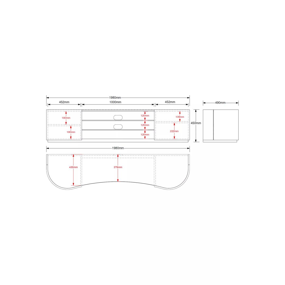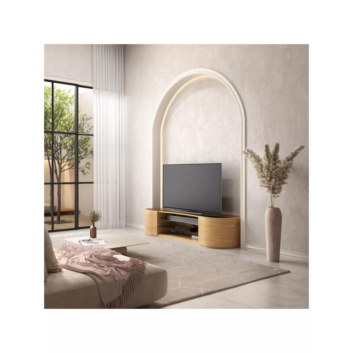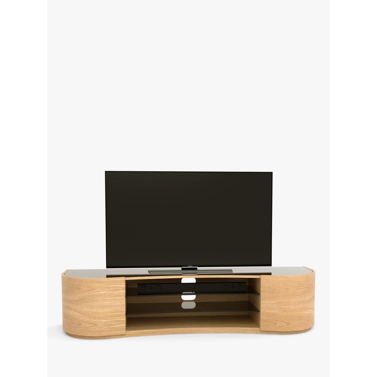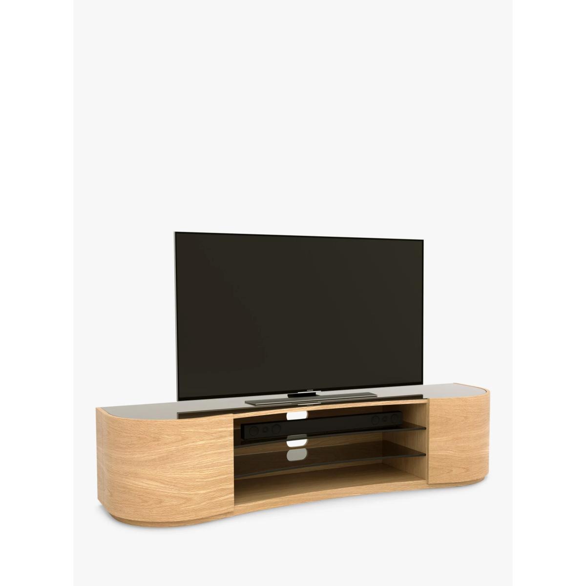The sophisticated, undulating curves of this TV unit effortlessly flow from the open shelves to the deeper curves on either side to create practical storage space. It makes a beautifully elegant base for your home media set-up. The Undulate design offers a large platform suitable for TVs up to 85" in size, with adjustable smoked glass shelves and concealed doors that reveal generous storage. Handmade British design Natural wood veneer for uniqueness and beauty Maximum shelf weight: 50kg Shelf depth: 49cm Delivered fully assembled Please note: Any maximum TV size quoted is a recommendation only and the exact dimensions of the TV's pedestal/feet should be checked to ensure it fits prior to purchase.