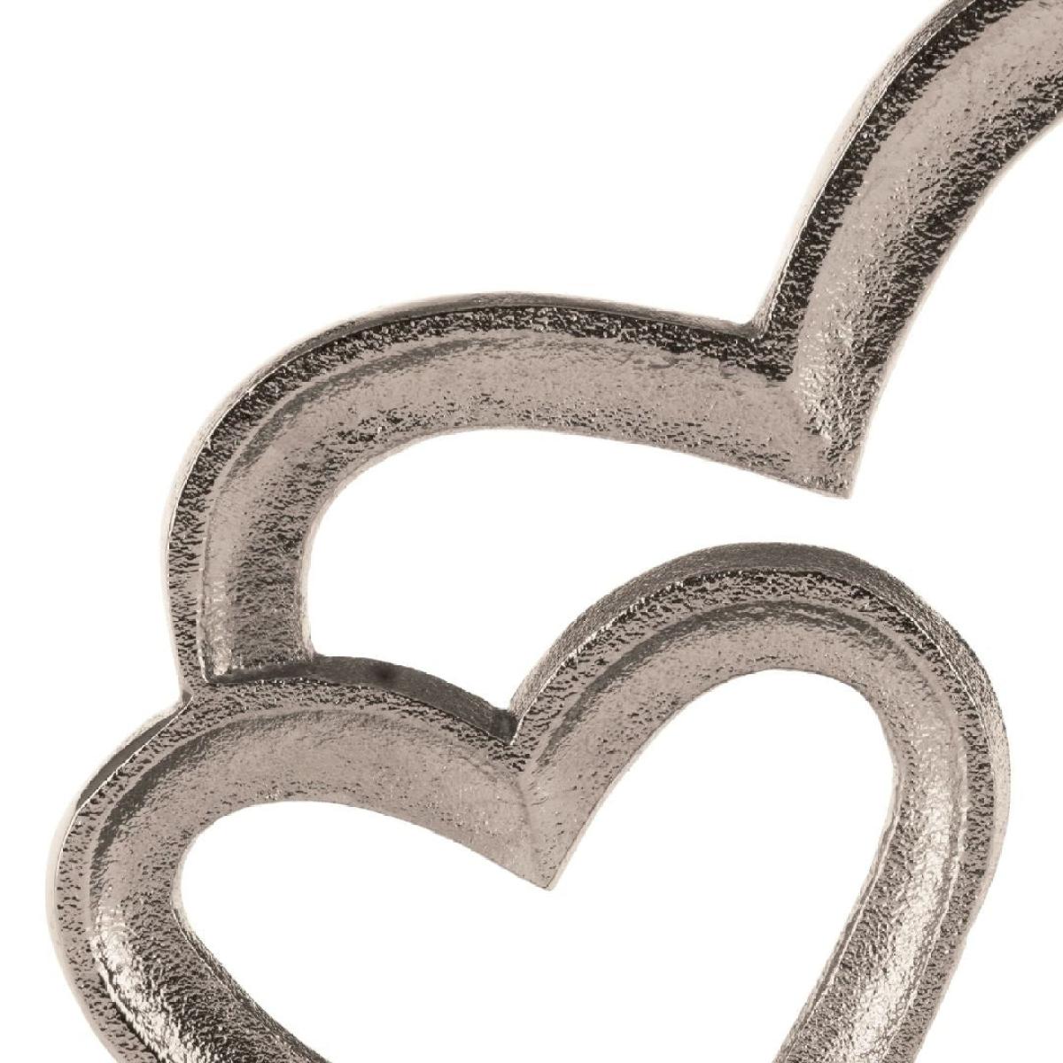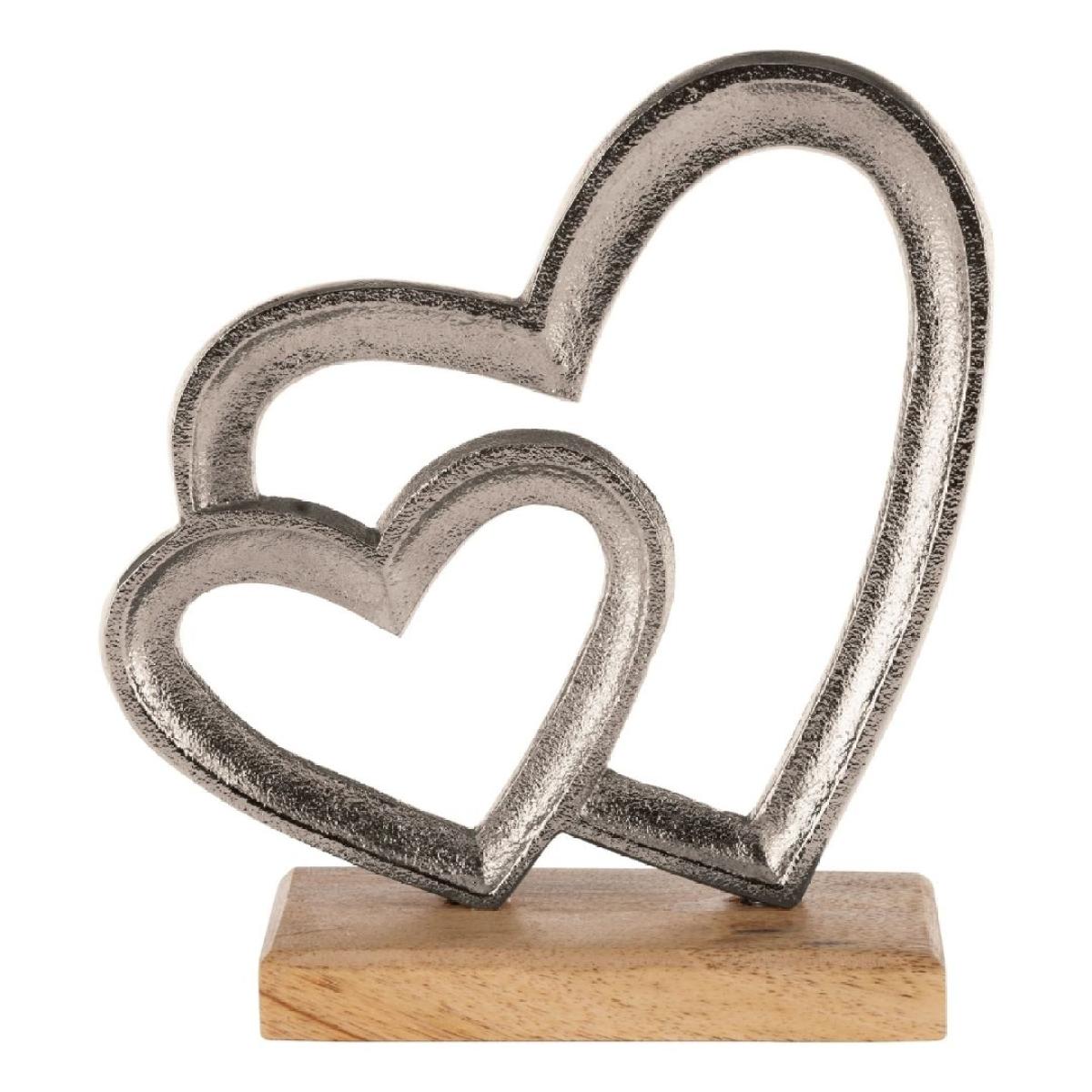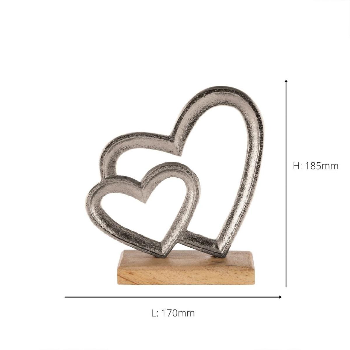 Tomamae satin nickel 2-heart ornament with wooden base. A charming and elegant accent piece that adds warmth and love to your decor, this ornament features two beautifully crafted, interlocked hearts made from brushed nickel, giving it a sleek, modern look. The hearts are mounted on a sturdy wooden base, providing a natural contrast that enhances its contemporary appeal. Perfect for displaying on a shelf, console or chest of drawers, the Tomamae 2-heart ornament serves as a thoughtful reminder of love and connection. Its combination of metallic shine and natural wood makes it a versatile piece that complements various interior styles, adding a touch of elegance to any space. Tomamae satin nickel 2-heart ornament with wooden base. A charming and elegant accent piece that adds warmth and love to your decor, this ornament features two beautifully crafted, interlocked hearts made from brushed nickel, giving it a sleek, modern look. The hearts are mounted on a sturdy wooden base, providing a natural contrast that enhances its contemporary appeal. Perfect for displaying on a shelf, console or chest of drawers, the Tomamae 2-heart ornament serves as a thoughtful reminder of love and connection. Its combination of metallic shine and natural wood makes it a versatile piece that complements various interior styles, adding a touch of elegance to any space.