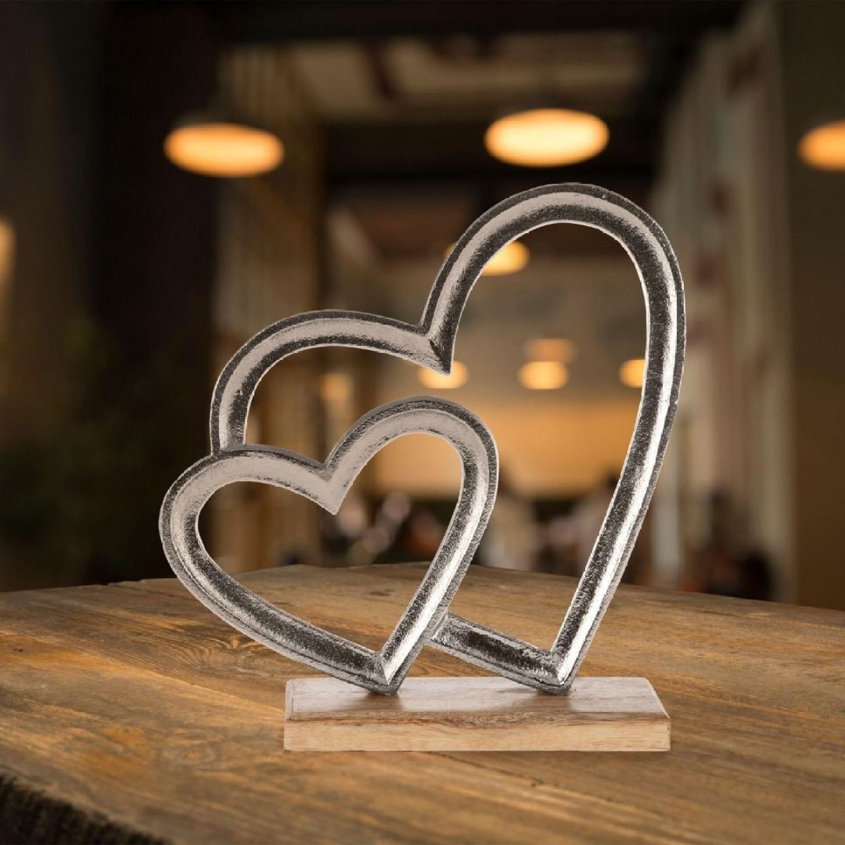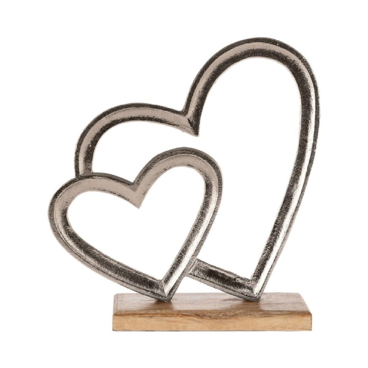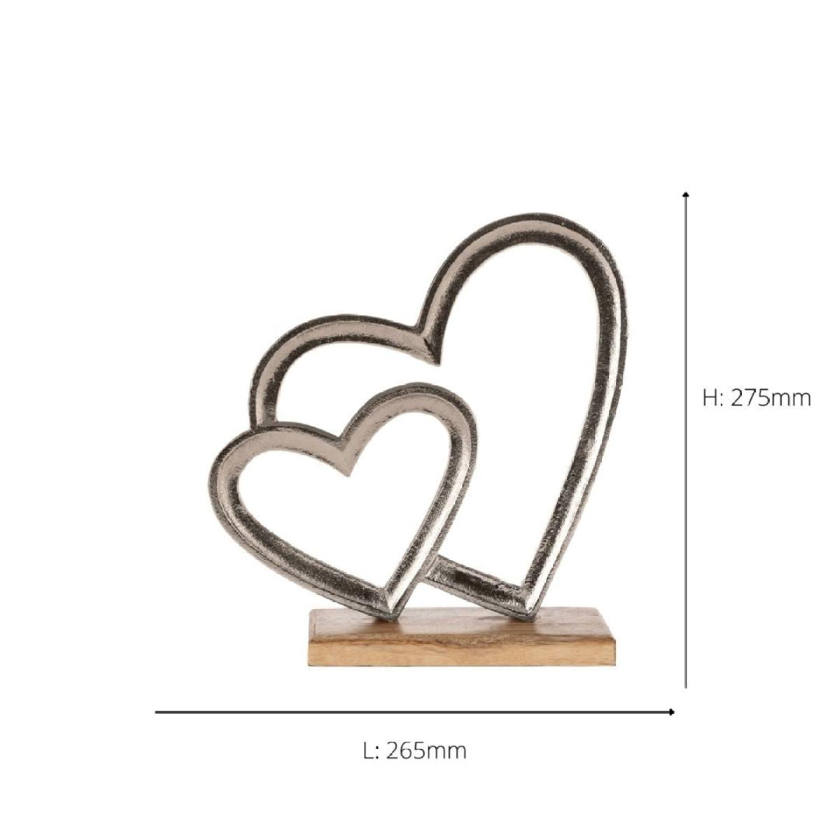 Tomamae nickel 2-heart ornament with wooden base. A charming and elegant accent piece that adds warmth and love to your decor, this ornament features two beautifully crafted, interlocked hearts made from brushed nickel, giving it a sleek, modern look. The hearts are mounted on a sturdy wooden base, providing a natural contrast that enhances its contemporary appeal. Perfect for displaying on a shelf, console or chest of drawers, the Tomamae 2-heart ornament serves as a thoughtful reminder of love and connection. Its combination of metallic shine and natural wood makes it a versatile piece that complements various interior styles, adding a touch of elegance to any space. Tomamae nickel 2-heart ornament with wooden base. A charming and elegant accent piece that adds warmth and love to your decor, this ornament features two beautifully crafted, interlocked hearts made from brushed nickel, giving it a sleek, modern look. The hearts are mounted on a sturdy wooden base, providing a natural contrast that enhances its contemporary appeal. Perfect for displaying on a shelf, console or chest of drawers, the Tomamae 2-heart ornament serves as a thoughtful reminder of love and connection. Its combination of metallic shine and natural wood makes it a versatile piece that complements various interior styles, adding a touch of elegance to any space.