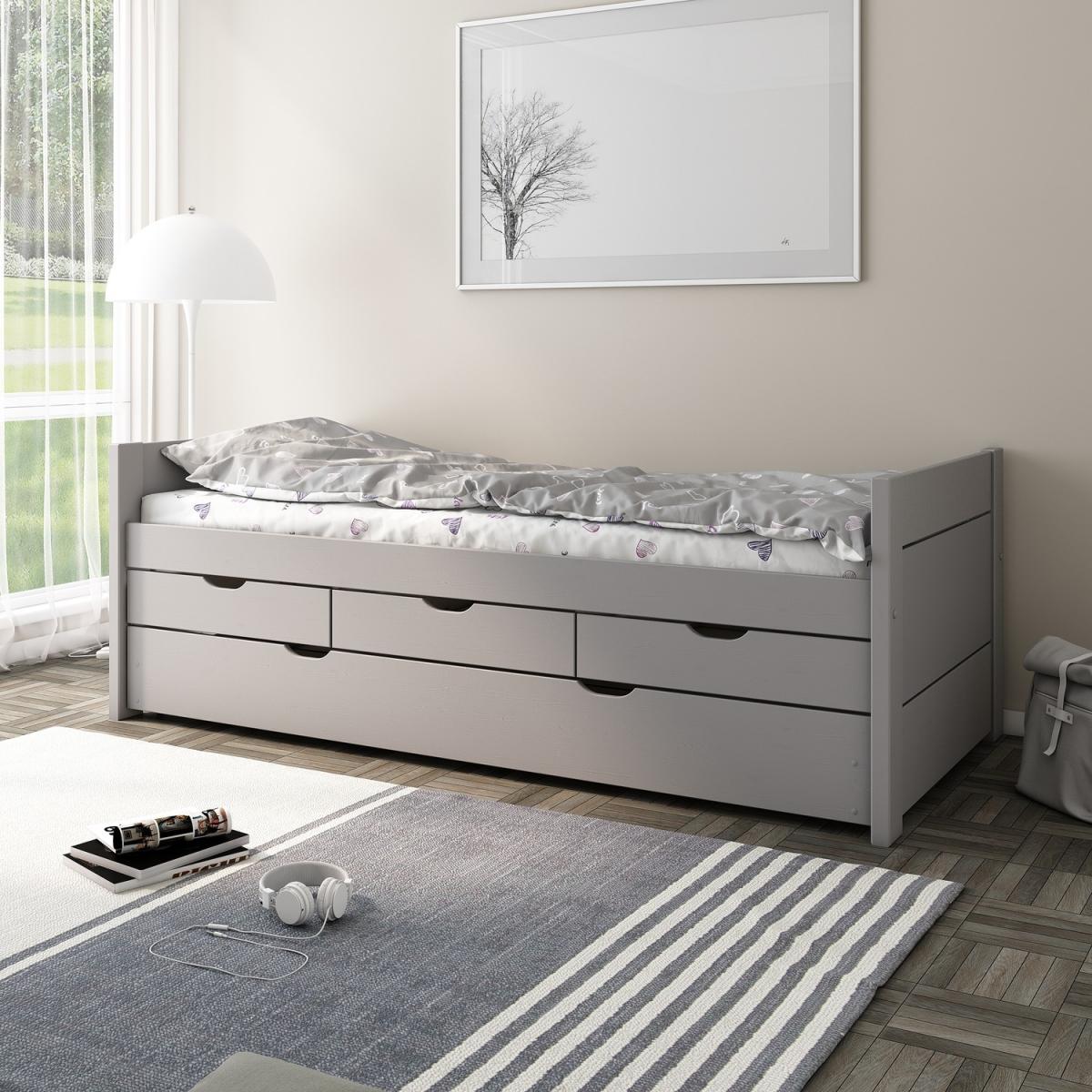 This rustic-styled solid wood guest bed is the perfect addition to a cosy guest bedroom. The Tomas has three spacious drawers ideal for stowing away any spare bedding. It also features a pull-out trundle that can be used as an additional drawer or extra bed for sleepovers or multiple guests. Available in natural warm honey, cool grey, or solid white finish, with an eco-friendly non-toxic coating. The Tomas is made of solid Scandinavian certified pine. Pine from the Scandinavian regions grows much slower due to the cold climate making it straighter with fewer knots, meaning it is perfect for building strong durable furniture made to last.