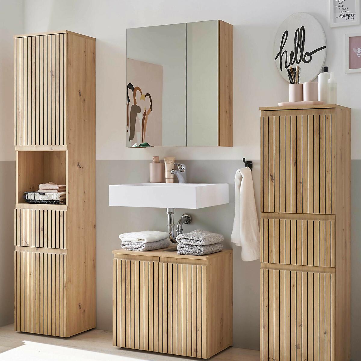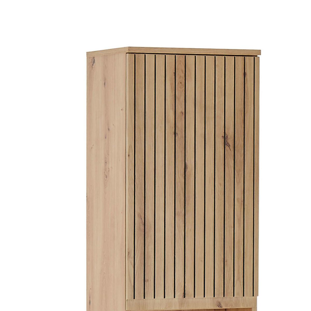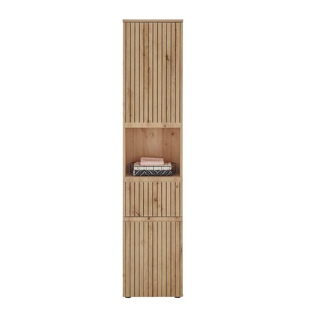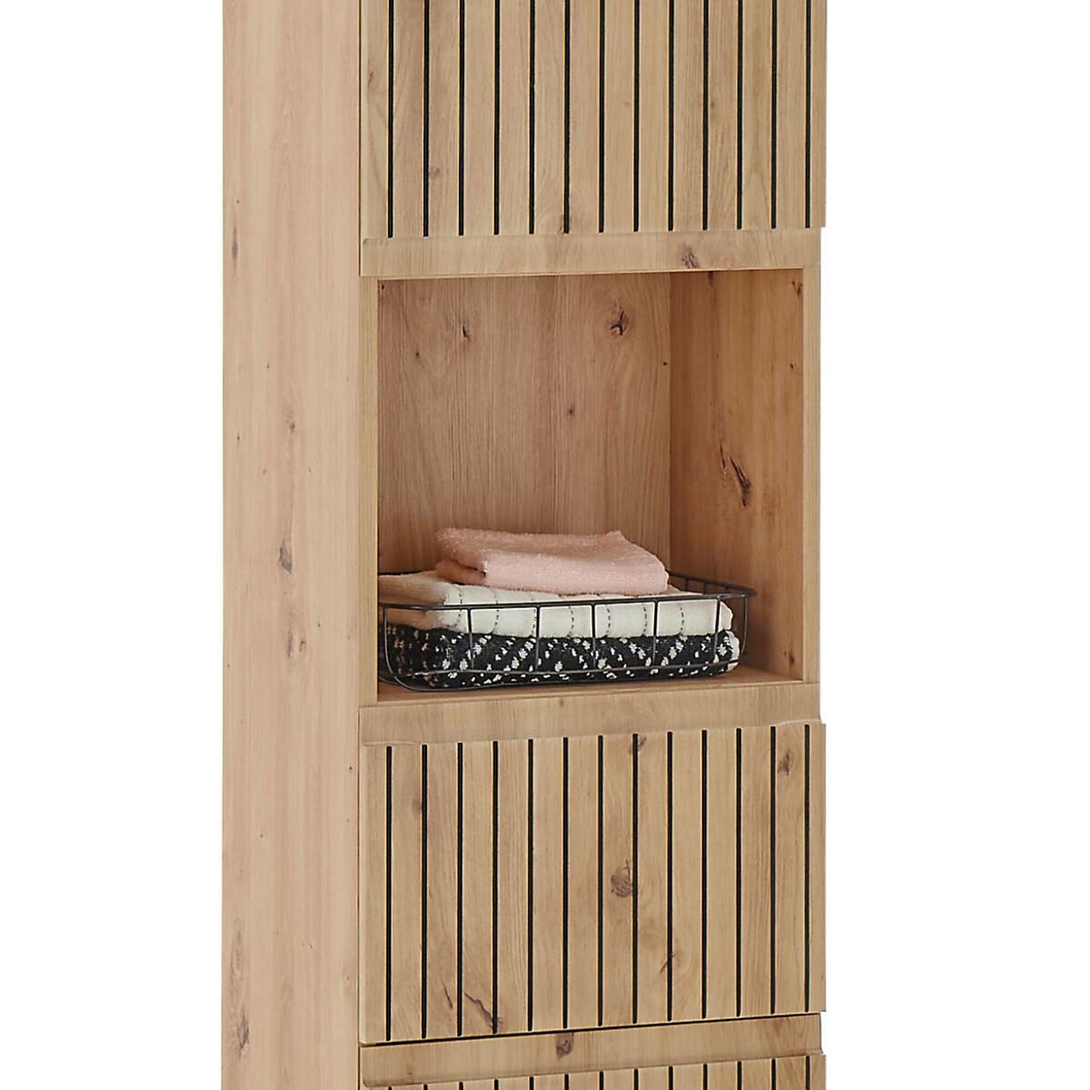 Elevate your bathroom with the Tomas Tall Cabinet, a perfect blend of rustic charm and modern design. Its natural wood tones and sleek, slatted detailing create a warm, inviting atmosphere. With two spacious cupboards and four ample shelves, you can neatly organise towels, toiletries, and other essentials. The elegant pull drawer, complete with a discrete handle, provides a sophisticated touch and makes accessing smaller items effortless. While the open middle compartment is perfect for showcasing folded towels or decorative baskets. Perfect for those who appreciate both elegance and practicality, this cabinet brings a timeless, stylish upgrade to your bathroom décor. Product details• Slatted design• Natural wood finish• Number of doors: 2• Number of shelves:5• Number of drawers: 1. Product Composition - 99% wood, 1% metal. Product Dimensions - 40 cm x30 cm x181 cm , Weight - 27.5 KGPackage Dimensions - 99 cm x 46 cm x 12 cm, Weight -14.6 KGThis product will be dispatched by one of our trusted suppliers. You’ll be contacted by their selected courier about your delivery. Please note: this product cannot be delivered to all Offshore Islands, Northern Ireland or Republic of Ireland. JULIA01