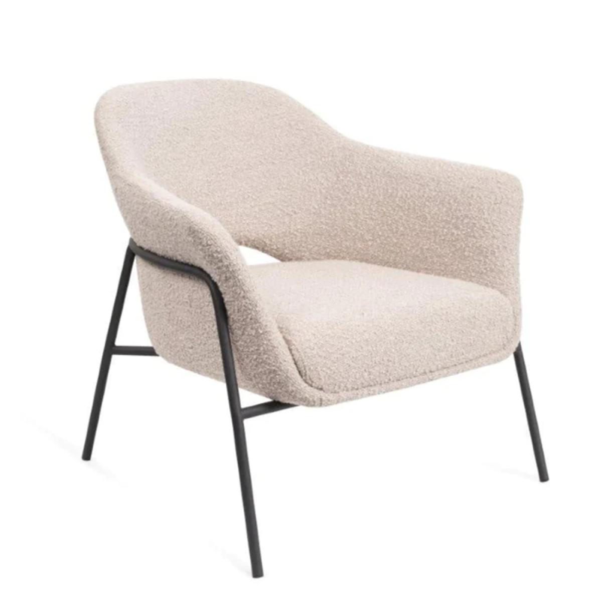 This chair ticks all the boxes for those looking to add a touch of modern comfort to their space. I love how the steam boucle fabric offers texture and a cosy feel, making it ideal for lounge areas, bedrooms, or even as a statement piece in a home office. Its sleek, curved silhouette with minimalist black metal legs allows it to work well in contemporary, mid-century, or eclectic interiors. Practical styling tips include pairing it with a neutral colour palette to highlight the fabric’s texture or adding a patterned cushion for extra visual interest. It’s a versatile piece that invites both style and comfort, perfect for creating a welcoming nook or accent in any room.