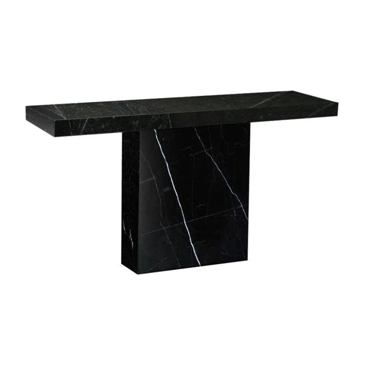 I love this console because of its sleek, bold silhouette and luxurious marble finish that instantly elevates any space. It works particularly well in modern or contemporary interiors, adding a sophisticated yet restrained statement piece. For styling, think minimal and uncluttered - a simple lamp, a few decorative objects, or a framed piece of art placed on top can create a polished look. Its size makes it versatile for hallways, entryways, or behind a sofa, providing function without sacrificing style. Practical tip: balance the visual weight with taller objects on either side or keep the surface clear to highlight its striking material.