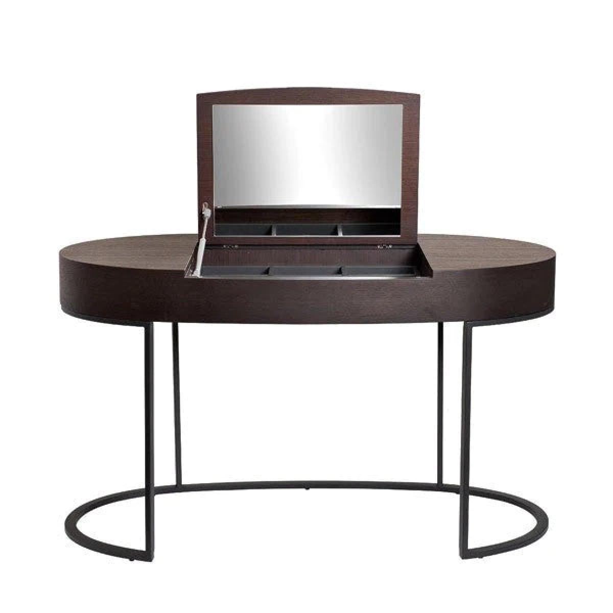 The vanity table is a sleek, contemporary piece that works particularly well in minimalist or modern interiors, thanks to its clean lines and understated design. I love how the dark wood finish adds warmth without overwhelming a space, making it versatile for both neutral colour schemes and more eclectic looks. Practical styling tips include pairing it with a statement mirror or a small vase of fresh flowers to create a functional yet inviting dressing area. It’s a great choice for those looking to optimise space, as its slim profile and pared-back design ensure it integrates seamlessly into bedrooms or dressing rooms without feeling bulky.