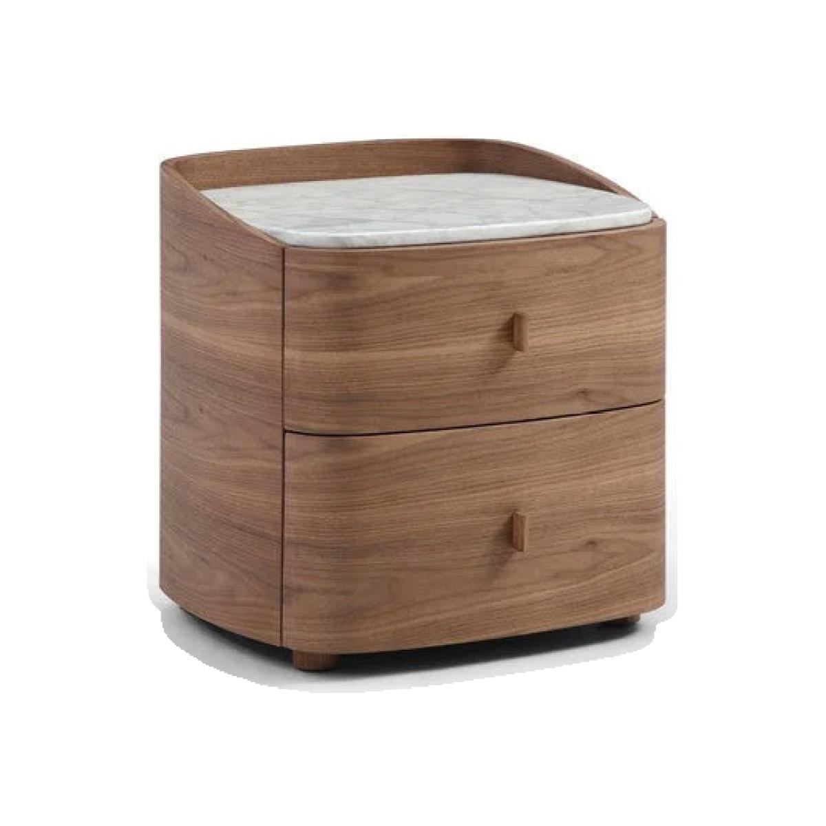 I love this bedside table for its clean, timeless design and the richness of the walnut finish, which brings warmth and sophistication to any bedroom. It works particularly well in contemporary or mid-century styled spaces, but can also add depth to more traditional interiors. When styling, I suggest pairing it with neutral bedding to let the wood’s natural beauty stand out, and adding a small lamp or a stack of favourite books on top for practicality. Its curved shape softens the overall look, making it a versatile and elegant addition that can easily blend into various colour schemes and decor palettes.