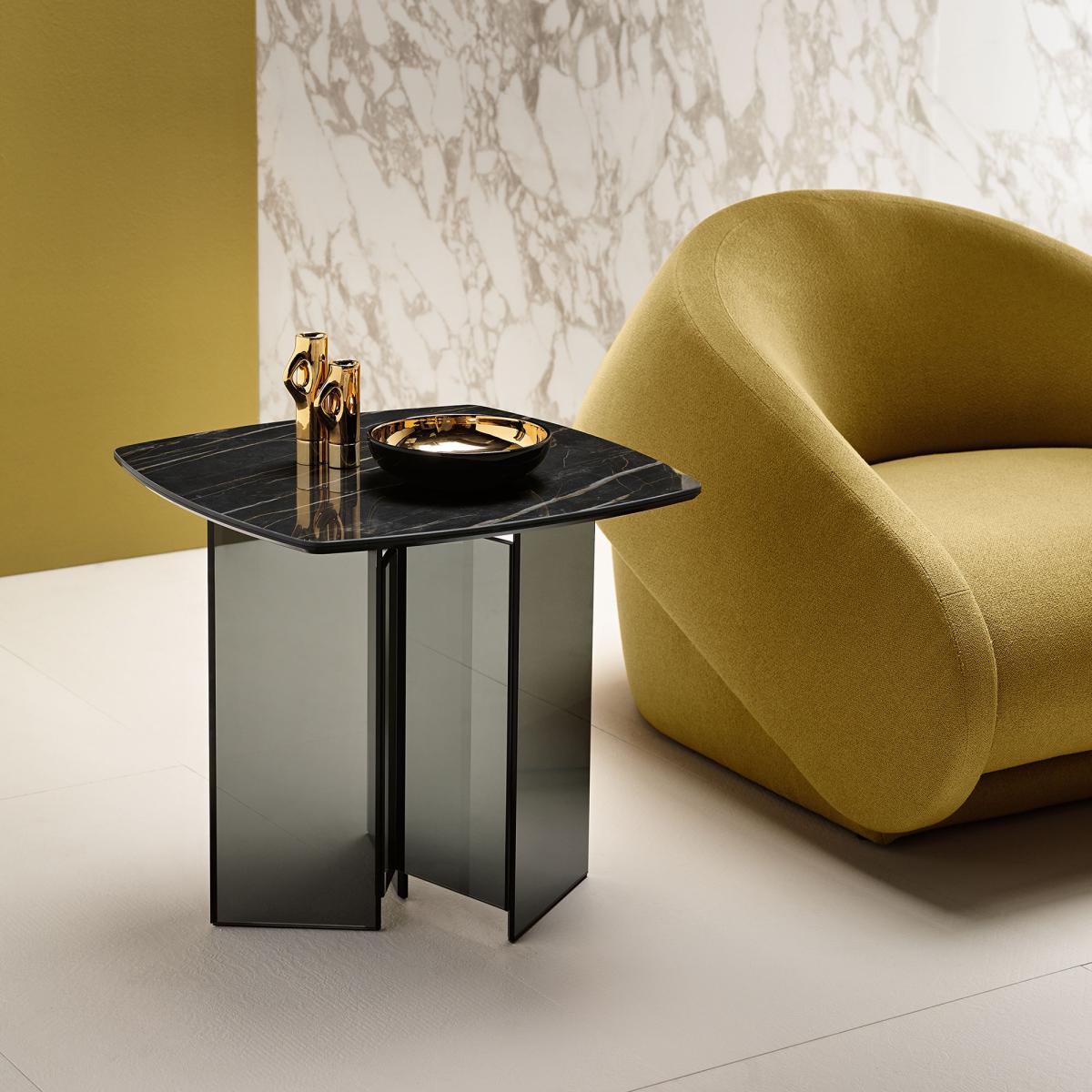 Characterised by its geometric form and smooth finish, the Metropolis coffee table is like none other. Supported by an angular base, the ceramic top features a beautiful marble pattern with for a sophisticated and opulent look. Designed by Giuseppe Maurizio Scutellà, Metropolis is a passionate and innovative piece made with advanced technologies that will deliver contemporary charisma to your home.