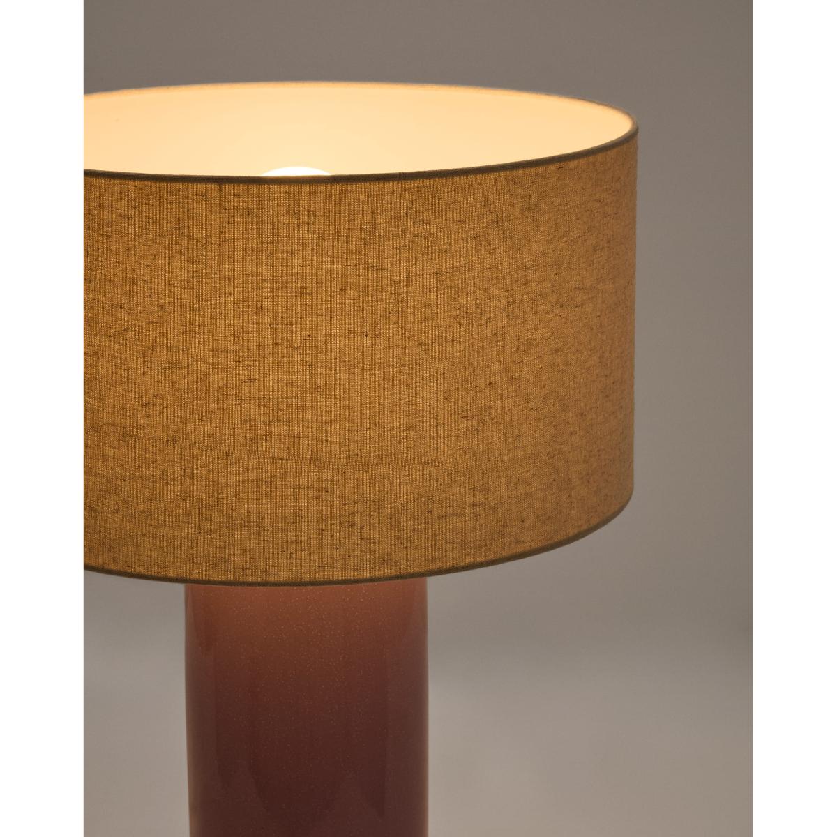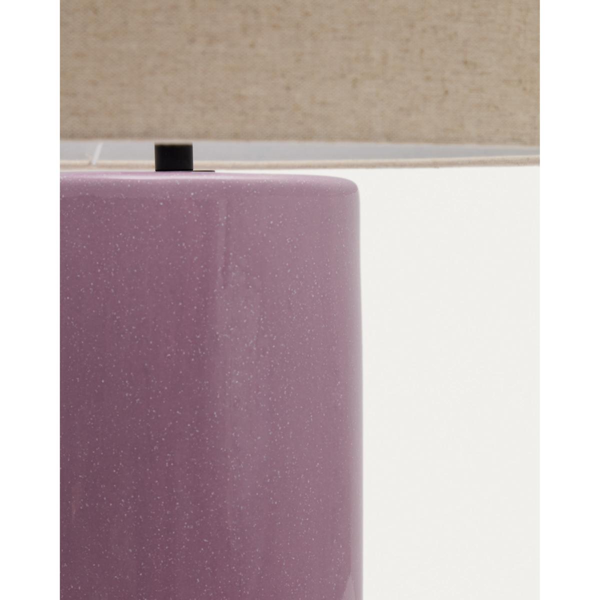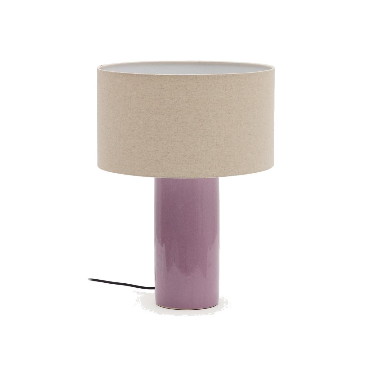 Designed to add a touch of sophistication and exclusivity, this ceramic table lamp in an elegant lilac hue is the perfect accent to enrich any space. Its glazed base features subtle variations in tone and texture, making each piece unique and full of personality. The cotton lamp shade with a beige vigoreaux print balances the design, softening the light to create a warm and cosy atmosphere. Compatible with E27 bulbs up to 40W (sold separately), this lamp not only illuminates but also makes a style statement. Available in an attractive dark blue colour for those looking for a vibrant alternative, this piece is ideal for interiors designed to combine functionality and a distinctive and stylish design. Perfect for adding character and elegance to bedrooms, living rooms or any corner that needs a touch of distinction.