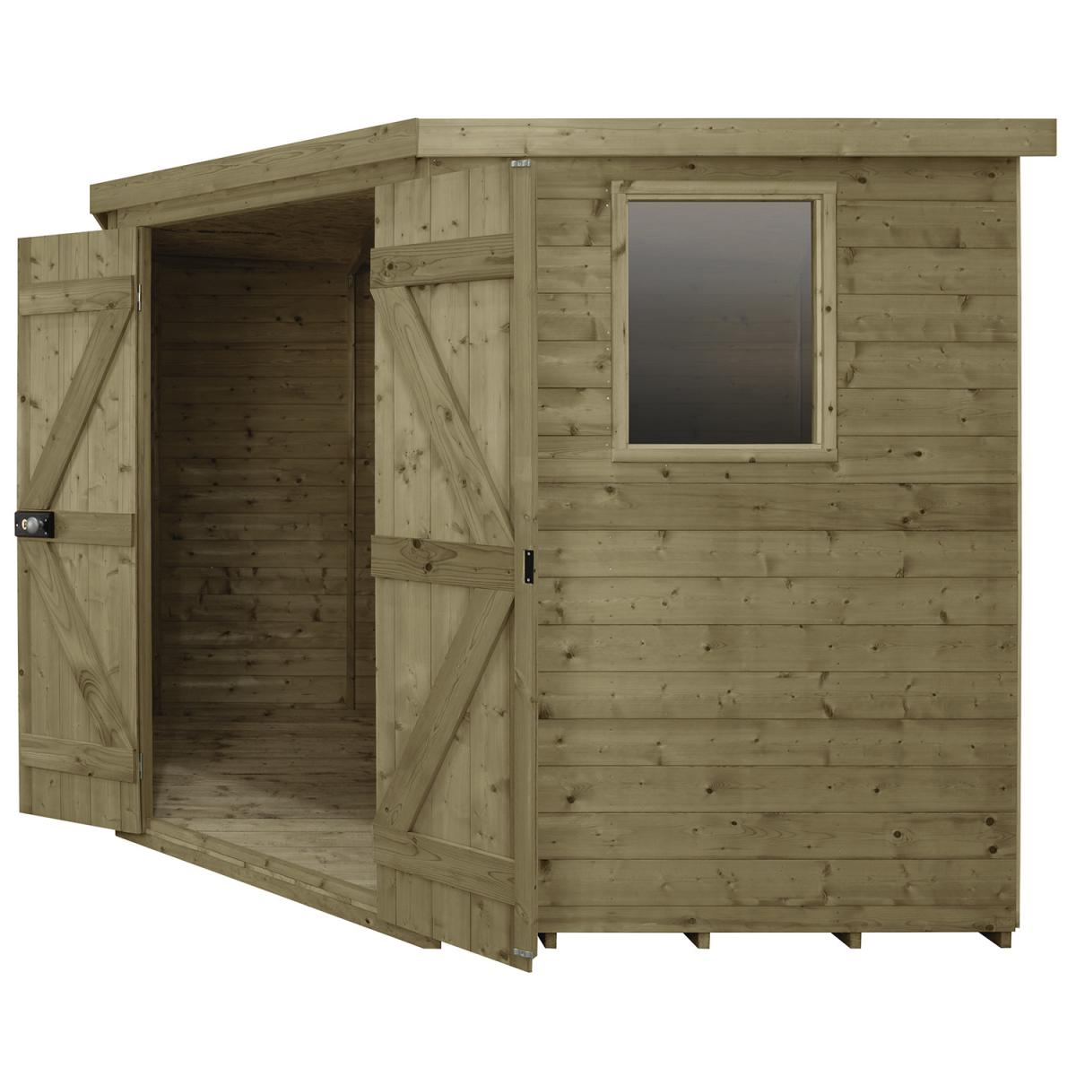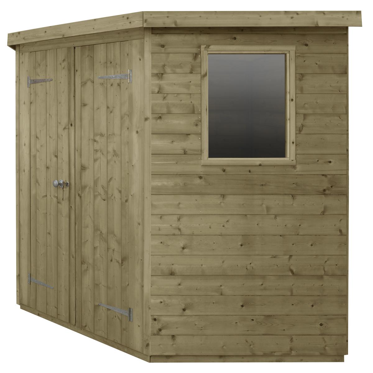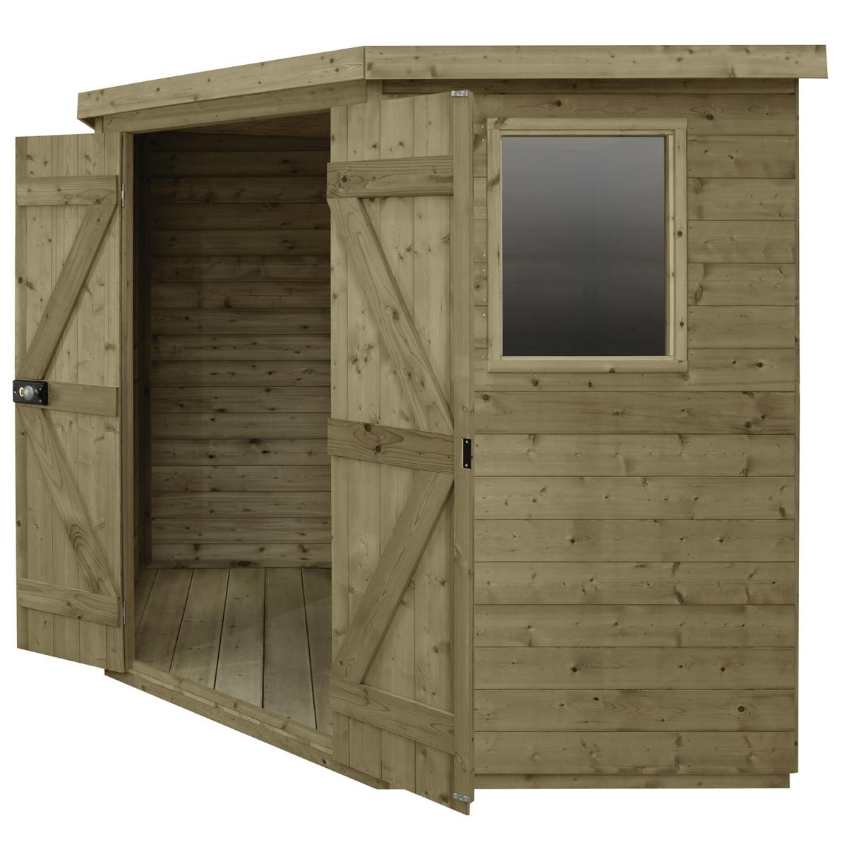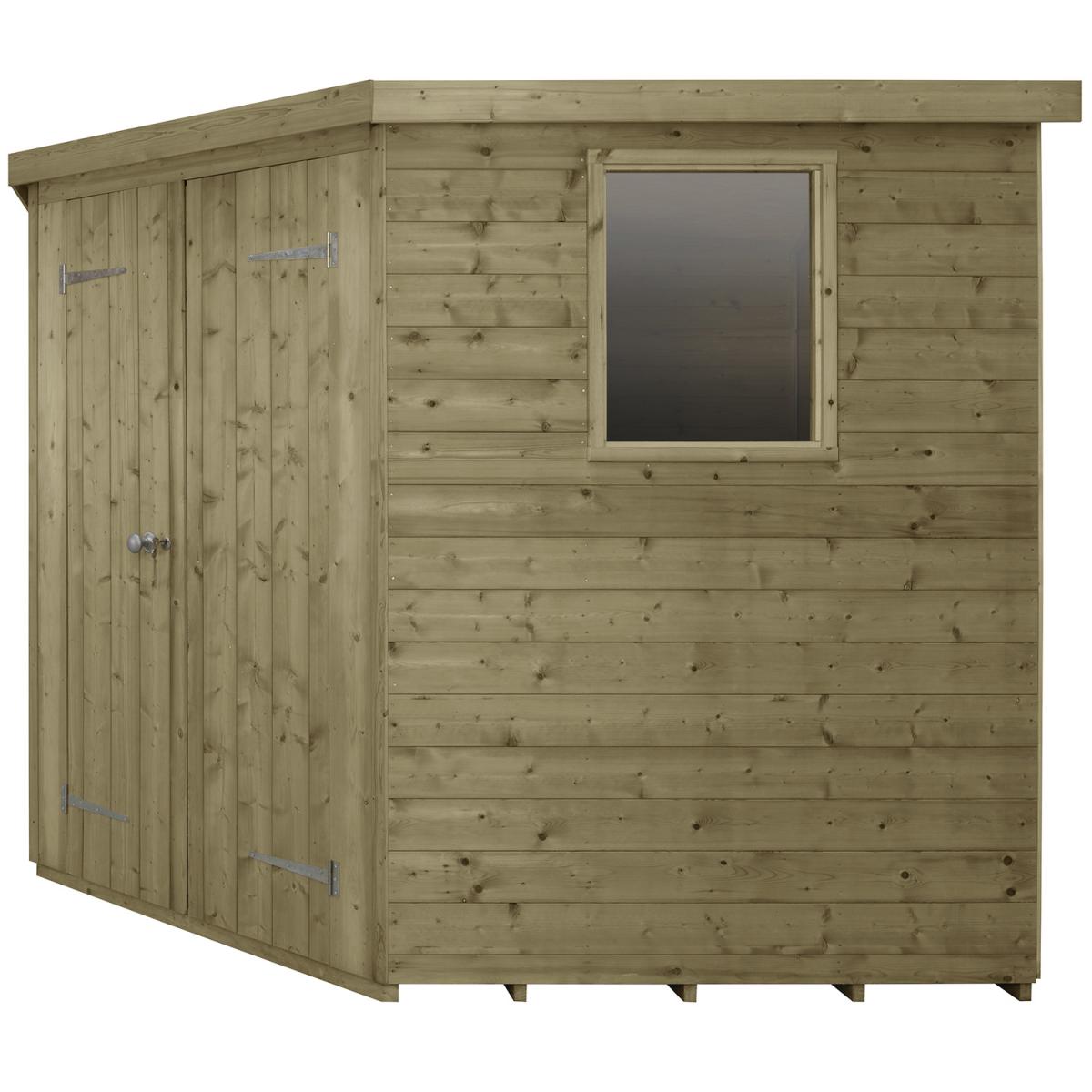 This premium quality Tongue & Groove Pressure Treated Corner Shed will help you keep your garden neat and tidy without being imposing on most of your space. It will slot easily right into the corner of your garden, while the blunted design of the front won't take up too much space, and creates a soft edge to the shed. The clever use of space inside makes this shed perfect for garden storage such as tools and bikes. Manufactured from smooth-planed, interlocking Tongue & Groove boards for a high quality build, all timber used has been pressure treated to ensure rot-resistance and durability. With Tongue & Groove also used across the flooring to ensure a super solid floor, the Pressure Treated Corner Shed is perfect for storing heavier items such as garden machinery or shelving units to hold smaller items. It features double opening doors with 'Z' framing for additional strength and they are secured with a rim lock fastening. The two opening windows are fitted with high quality hinges and catches to enable ventilation and are glazed with Premium 3mm acrylic, creating a light and airy space. The roof is finished with high quality mineral felt for a weather-proof finish. Instillation by a team of professionals is available for an extra yet affordable price, and all fittings and fixtures are included with this shed, as well as easy-to-follow instructions are included for any DIY hobbyists who want to really made this shed their own by building it themselves.