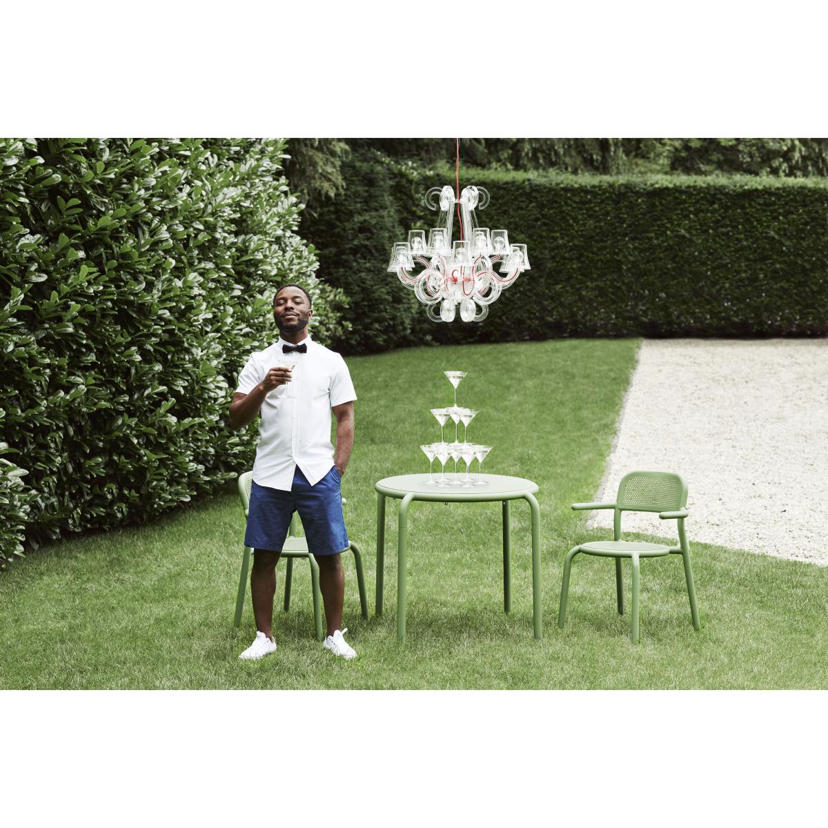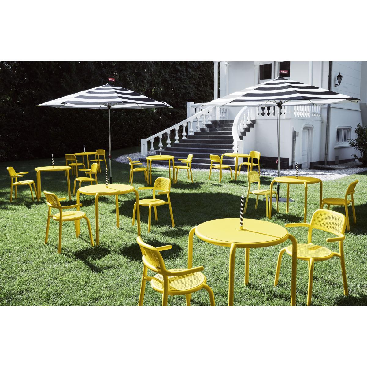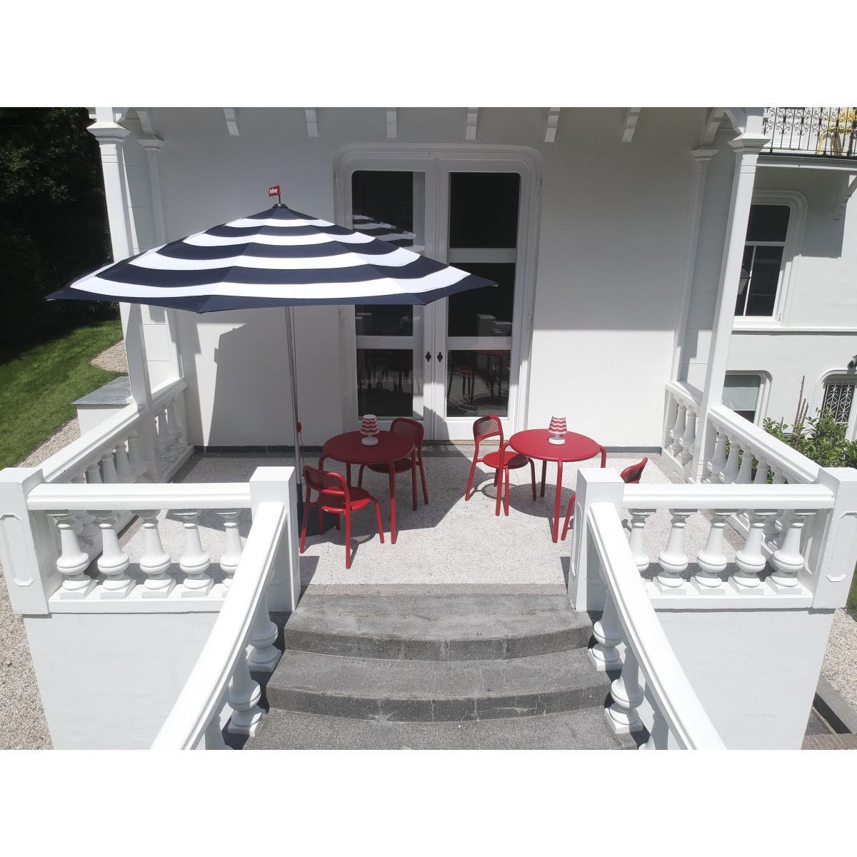 A new icon is born! Fatboy has teamed up with Dutch designer Erik Stehmann to create a fabulous outdoor collection that aspires to real joy of living. Cheerful, colourful and graphic, the Toní collection brings life to your garden! The aluminium seats and tables have solid, round, fun lines. The Toní collection is available in a range of colours offering a host of options to create your own outdoor décor. With its simple, modern lines, the Toní collection blends in perfectly with all types of spaces, indoors or out, small or large, private or public. The Toní chairs and tables are perfect to create a pleasant dining area on a terrace or in a kitchen. Made from aluminium with a high-resistance coating for outdoors, the Toní furniture stands up to UV rays and poor weather. Solid, light and ultra-handy, these items of furniture move easily from the living room to the terrace according to the seasons and your needs. All the seats are stackable. The Toní table has a parasol hole in the middle of its top (Ø 41 mm). The hole can be closed with the cap matching the table (included). This cap is reversible: flat on one side, it has a candle holder on the back (for a long candle). Ideal for a candlelit dinner, an intimate time among friends or to enjoy a meal outdoors. This table has Silence pads that absorb vibrations from the feet on the floor. You can also accessorise your Toní Bistreau table with the Toní candle holder (for 3 long candles) sold separately. It fits easily into the hole in the top.