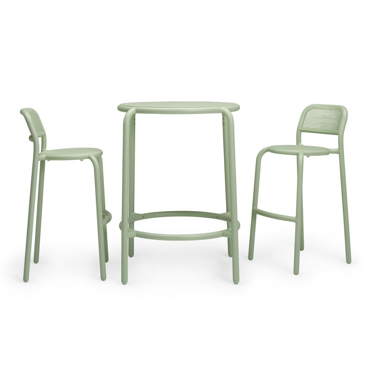 A new icon is born! Fatboy has teamed up with Dutch designer Erik Stehmann to create a fabulous outdoor collection that aspires to real joy of living. Cheerful, colourful and graphic, the Toní collection brings life to your garden! The aluminium seats and tables have solid, round, fun lines. The Toní collection is available in a range of colours offering a host of options to create your own outdoor décor. With its simple, modern lines, the Toní collection blends in perfectly with all types of spaces, indoors or out, small or large, private or public. The Toní chairs and tables are perfect to create a pleasant dining area on a terrace or in a kitchen. Made from aluminium with a high-resistance coating for outdoors, the Toní furniture stands up to UV rays and poor weather. Solid, light and ultra-handy, these items of furniture move easily from the living room to the terrace according to the seasons and your needs. All the seats are stackable. This Toní Haute Bistreau high table can accommodate 2 people. This high table has a footrest and Silence pads which absorb vibrations from the feet on the floor.