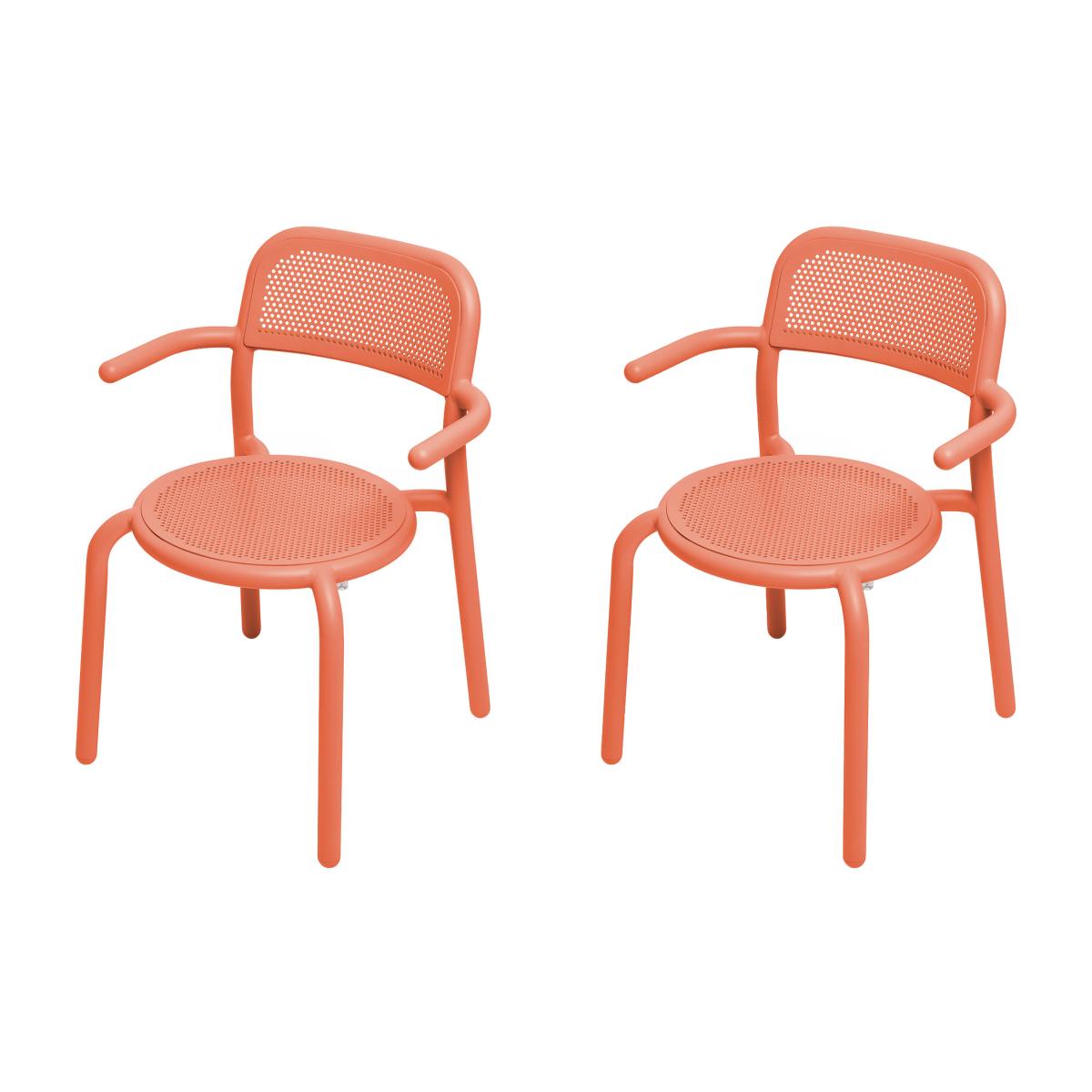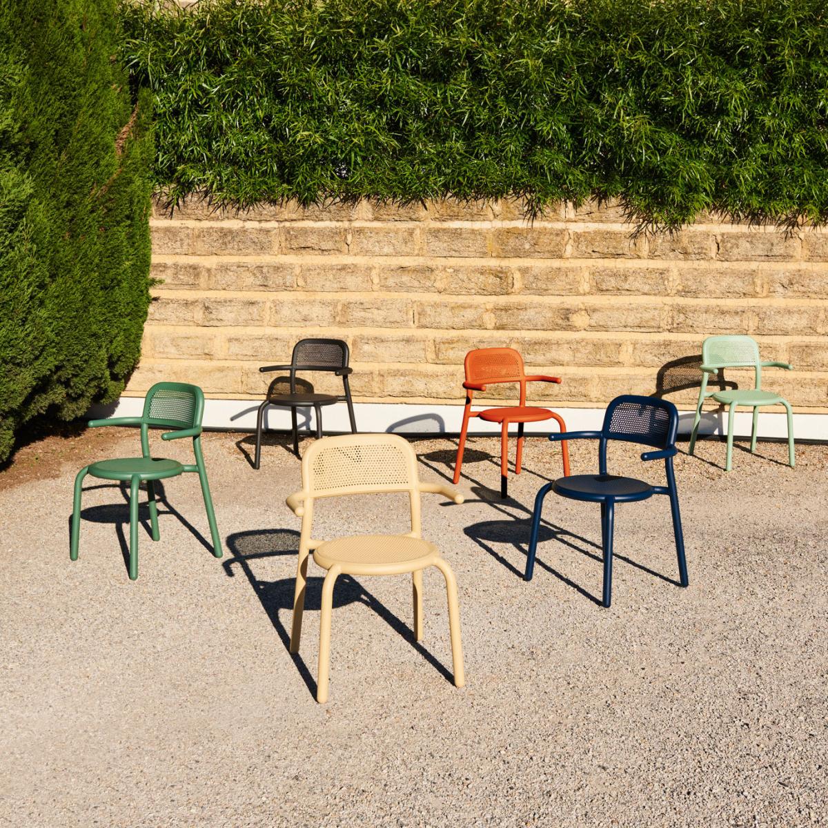 A new icon is born! Fatboy has teamed up with Dutch designer Erik Stehmann to create a fabulous outdoor collection that aspires to real joy of living. The traditional Bistro chair made from rattan inspired this new range of outdoor furniture. The rattan with its hexagonal flutes is getting a makeover with this 100% aluminium modern version. Cheerful, colourful and graphic, the Toní collection brings life to your garden! Mixing solid surfaces and perforated sheet, the aluminium seats and tables have solid, round, fun lines. The Toní collection is available in a range of colours offering a host of options to create your own outdoor décor. With its simple, modern lines, the Toní collection blends in perfectly with all types of spaces, indoors or out, small or large, private or public. The Toní seats and tables are perfect to create a pleasant dining area on a terrace or in a kitchen. Made from aluminium with a high-resistance coating for outdoors, the Toní furniture stands up to UV rays and poor weather. Solid, very light and ultra-handy, these items of furniture move easily from the living room to the terrace according to the seasons and your needs. All the seats are stackable. The Toní armchair combines a thick tubular structure which contrasts with the lightness of the perforated sheet. The micro-perforation offers a delicate graphic pattern that plays with transparency. The perforation is also functional: the holes allow rainwater to drain away. This armchair has Silence pads that absorb vibrations from the feet on the floor. This armchair can be accessorised with a water-resistant seat cushion sold separately. This set includes two Toní armchairs.