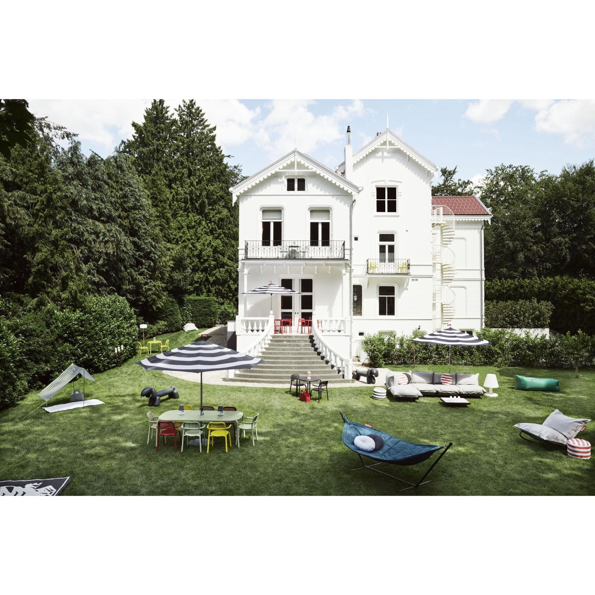 A new icon is born! Fatboy has teamed up with Dutch designer Erik Stehmann to create a fabulous outdoor collection that aspires to real joy of living. The traditional Bistro chair made from rattan inspired this new range of outdoor furniture. The rattan with its hexagonal flutes is getting a makeover with this 100% aluminium modern version. Cheerful, colourful and graphic, the Toní collection brings life to your garden! Mixing solid surfaces and perforated sheet, the aluminium seats and tables have solid, round, fun lines. The Toní collection is available in a range of colours offering a host of options to create your own outdoor décor. With its simple, modern lines, the Toní collection blends in perfectly with all types of spaces, indoors or out, small or large, private or public. The Toní seats and tables are perfect to create a pleasant dining area on a terrace or in a kitchen. Made from aluminium with a high-resistance coating for outdoors, the Toní furniture stands up to UV rays and poor weather. Solid, very light and ultra-handy, these items of furniture move easily from the living room to the terrace according to the seasons and your needs. All the seats are stackable. The Toní armchair combines a thick tubular structure which contrasts with the lightness of the perforated sheet. The micro-perforation offers a delicate graphic pattern that plays with transparency. The perforation is also functional: the holes allow rainwater to drain away. This armchair has Silence pads that absorb vibrations from the feet on the floor. This armchair can be accessorised with a water-resistant seat cushion sold separately. This set includes two Toní chairs. The designer Erik Stehmann on the Toní collection: "I like the creative and identifiable side of the Toní range. I consider the chair as a pleasant cartoon character. A character with whom I would like to have dinner. ".