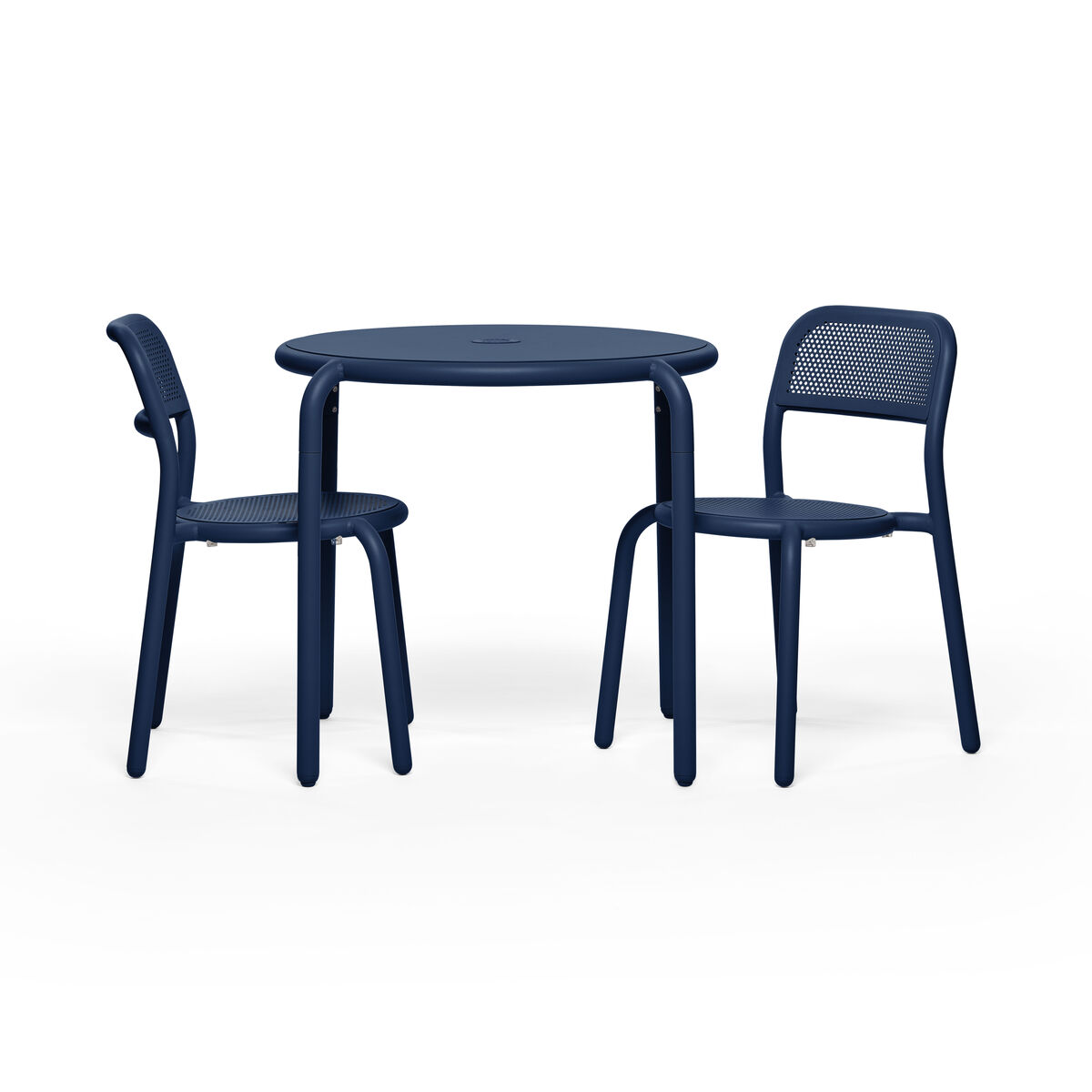 A new icon is born! Fatboy has teamed up with Dutch designer Erik Stehmann to create a fabulous outdoor collection that aspires to real joy of living. The traditional Bistro chair made from rattan inspired this new range of outdoor furniture. The rattan with its hexagonal flutes is getting a makeover with this 100% aluminium modern version. Cheerful, colourful and graphic, the Toní collection brings life to your garden! Mixing solid surfaces and perforated sheet, the aluminium seats and tables have solid, round, fun lines. The Toní collection is available in a range of colours offering a host of options to create your own outdoor décor. With its simple, modern lines, the Toní collection blends in perfectly with all types of spaces, indoors or out, small or large, private or public. The Toní chairs and tables are perfect to create a pleasant dining area on a terrace or in a kitchen. Made from aluminium with a high-resistance coating for outdoors, the Toní furniture stands up to UV rays and poor weather. Solid, very light and ultra-handy, these items of furniture move easily from the living room to the terrace according to the seasons and your needs. All the seats are stackable. The Toní chair combines a thick tubular structure which contrasts with the lightness of the perforated sheet. The micro-perforation offers a delicate graphic pattern that plays with transparency. The perforation is also functional: the holes allow rainwater to drain away. This chair has Silence pads that absorb vibrations from the feet on the floor. This chair can be accessorised with a water-resistant seat cushion sold separately. This set includes two Toní chairs. The designer Erik Stehmann on the Toní collection: "I like the creative and identifiable side of the Toní range. I consider the chair as a pleasant cartoon character. A character with whom I would like to have dinner. ".