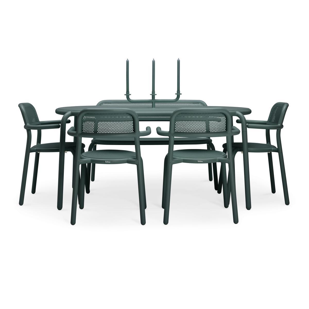 A new icon is born! Fatboy has teamed up with Dutch designer Erik Stehmann to create a fabulous outdoor collection that aspires to real joy of living. Cheerful, colourful and graphic, the Toní collection brings life to your garden! The aluminium seats and tables have solid, round, fun lines. The Toní collection is available in a range of colours offering a host of options to create your own outdoor décor. With its simple, modern lines, the Toní collection blends in perfectly with all types of spaces, indoors or out, small or large, private or public. The Toní chairs and tables are perfect to create a pleasant dining area on a terrace or in a kitchen. Made from aluminium with a high-resistance coating for outdoors, the Toní furniture stands up to UV rays and poor weather. Solid, light and ultra-handy, these items of furniture move easily from the living room to the terrace according to the seasons and your needs. All the seats are stackable. This oval Toní Tavolo table can accommodate 6 guests. It has a parasol hole in the middle of its top (Ø 41 mm). The hole can be closed with the cap matching the table (included). This cap is reversible: flat on one side, it has a candle holder on the back (for a long candle). Ideal for a candlelit dinner, an intimate time among friends or to enjoy a meal outdoors. This table has Silence pads that absorb vibrations from the feet on the floor. This table can be accessorised with a candle holder (for 3 long candles) sold separately which fits into the parasol hole. Ideal for a candlelit dinner, an intimate time among friends or to enjoy a meal outdoors. Removable candlestick NOT INCLUDED : SOLD SEPARATELY.