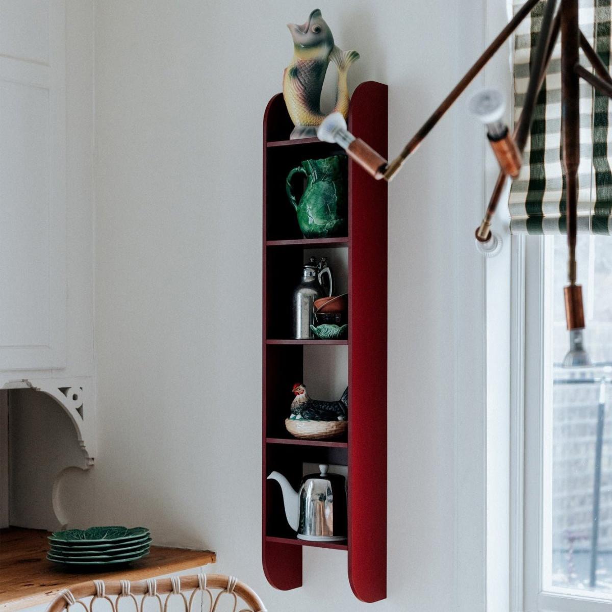 I love this one for its sleek, modern shape and bold colour - it adds a contemporary touch without overwhelming a space. The burgundy finish makes it quite versatile, working well in both minimalist interiors and those with warmer, richer tones. It’s perfect for creating a visual focal point or adding a pop of colour on a blank wall. Practical styling tips include grouping small decorative objects, plants, or books with complementary colour schemes to keep the look cohesive. Because of its tall, narrow profile, it’s ideal for narrow walls or corridor spaces, and it can be styled vertically or even combined with other shelves for a customised look. It’s a great way to bring both function and design to a room with limited space.