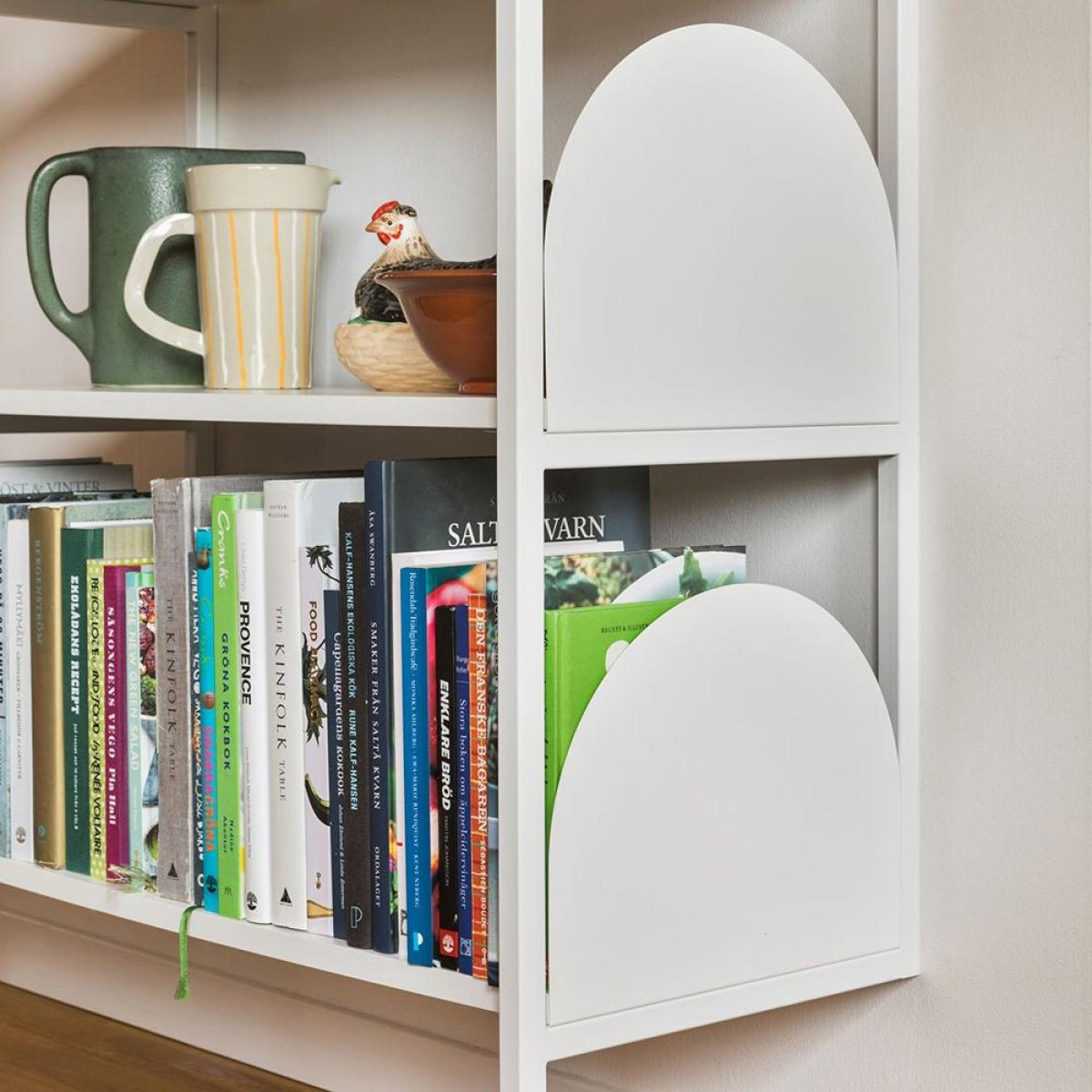 I really like this little bookend because of its minimalist design and versatile size, making it easy to integrate into various interiors. It works particularly well in Scandi-inspired spaces thanks to its clean white finish, but it can also add a fresh touch to modern, industrial, or even more eclectic shelves. Practical styling tips include grouping it with a selection of books in contrasting colours or textures to create visual interest, or using it to anchor art or decorative objects on open shelving. Its neutral colour ensures it won’t compete with other decorative elements, making it a go-to for keeping your books organised in a sleek, tidy way.