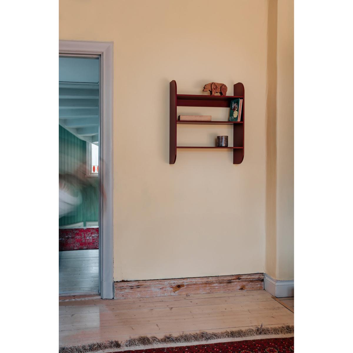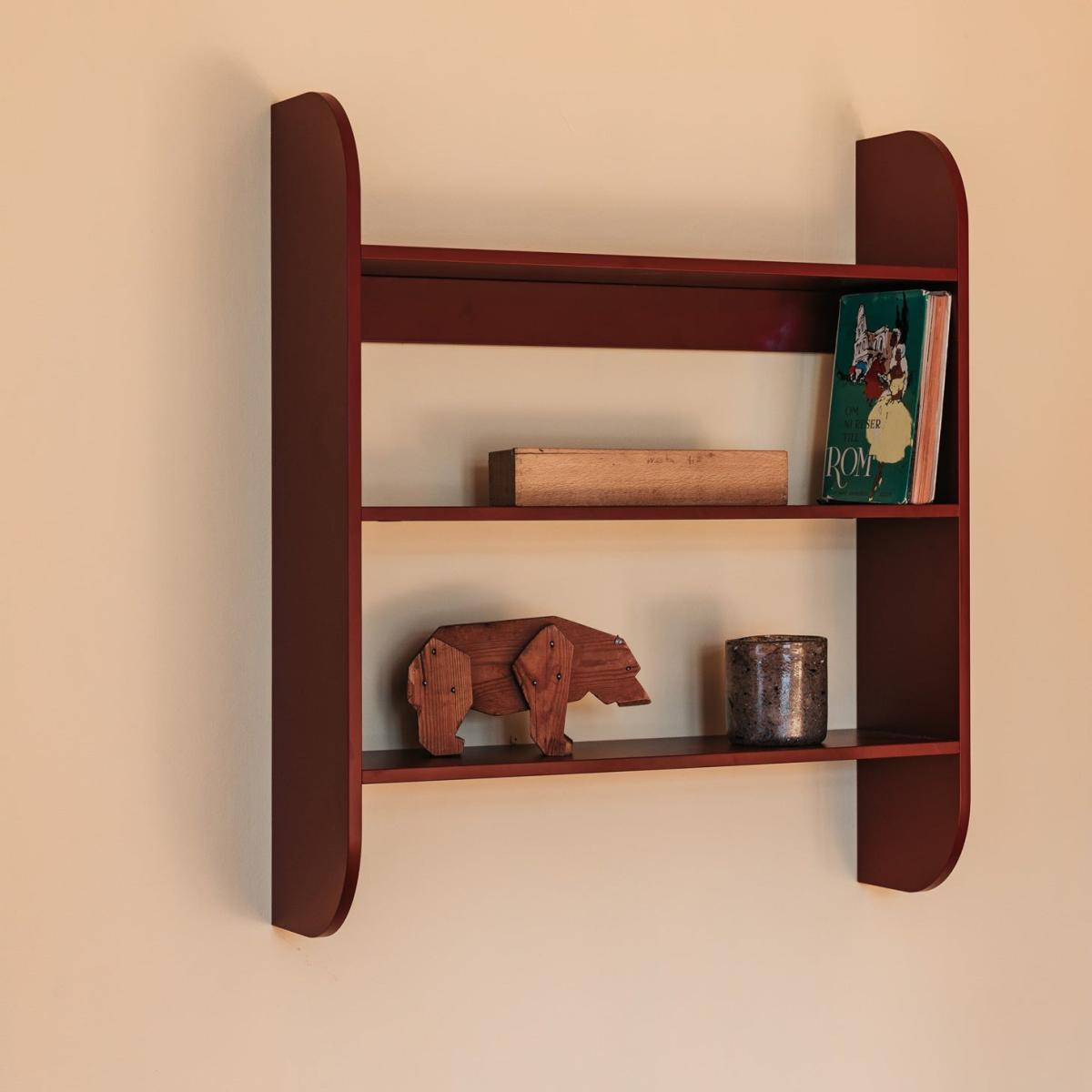 I love the strapats wall shelf for its bold, architectural presence and versatile colour. Its rich burgundy hue makes it an ideal statement piece in both modern and eclectic interiors, adding warmth and depth to a neutral colour palette. It works particularly well in contemporary living spaces, offices, or bedrooms where you want to create a focal point without clutter. Practical styling tips include layering books, small plants, and decorative objects to highlight its clean lines and colour. For a cohesive look, pair it with other mid-century or Scandinavian-inspired pieces, keeping accessories minimal to let the shelf’s striking hue do the talking.