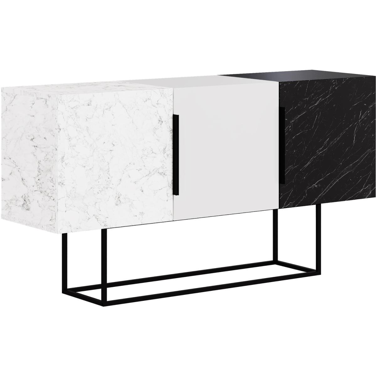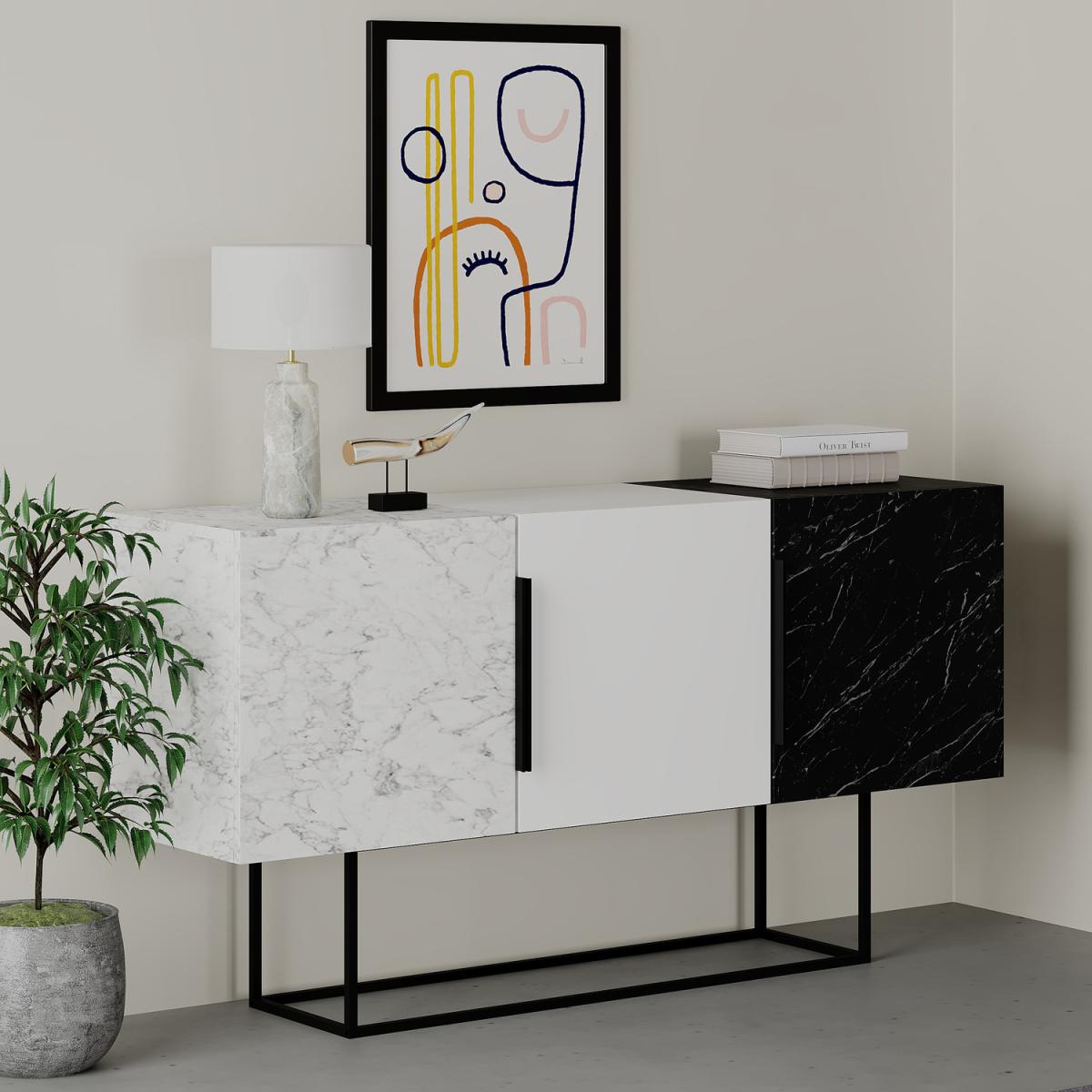 I love this sideboard because of its striking contrasting finish and contemporary silhouette, making it a versatile piece for modern interiors. It’s perfect in a minimalist living room or dining area, where its clean lines can be balanced with colourful accessories or artwork. A great styling tip is to keep the top surface uncluttered, using a few carefully chosen décor pieces like vases, books, or statement lamps to add personality. Inside, it offers practical storage to help keep your space organised, whether for tableware, office supplies, or media equipment. Its neutral colour palette means it can seamlessly blend into various colour schemes, from monochrome to more vibrant settings.