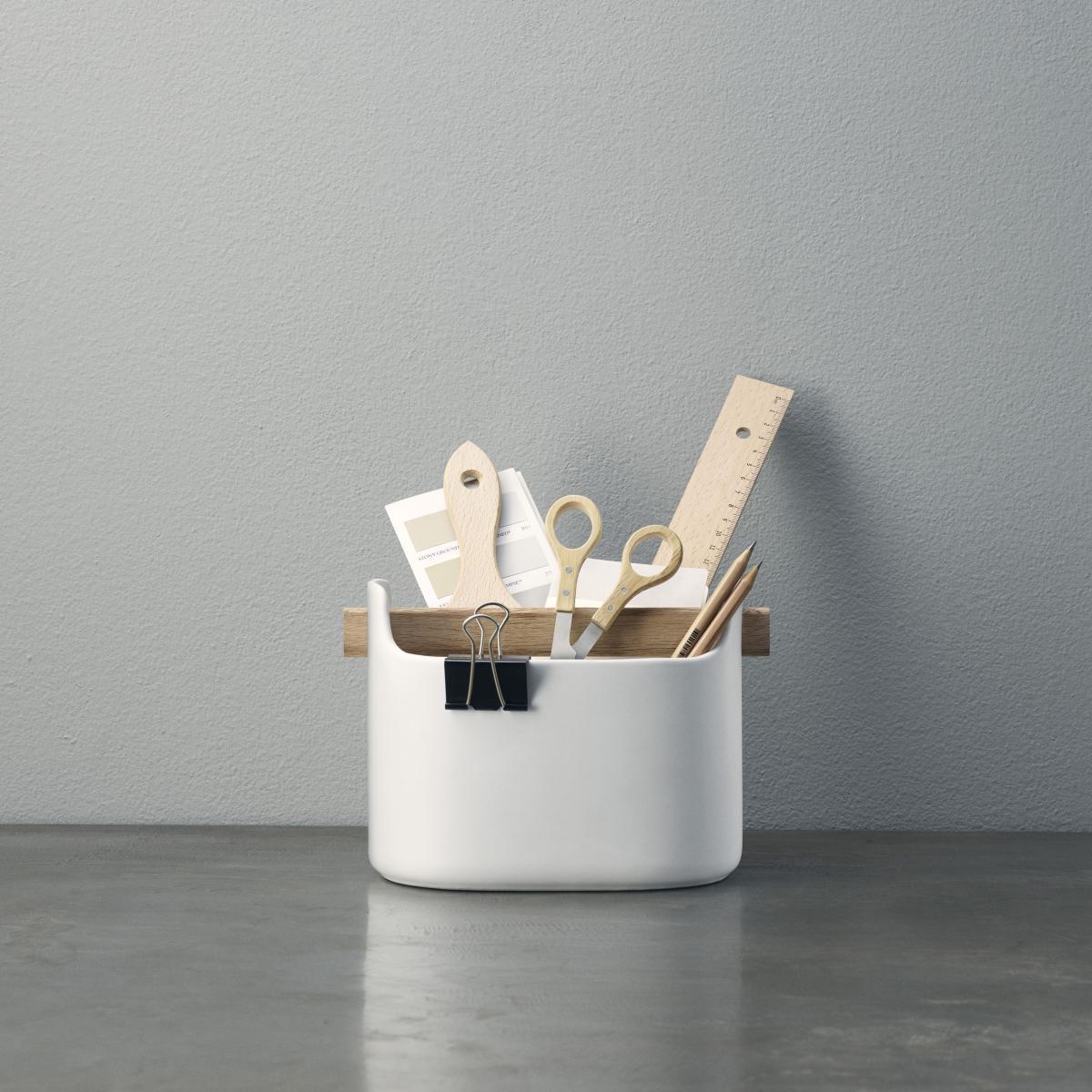 Toolbox Storage box - / L 19 x H 15 cm - Ceramic & oak by Eva Solo White/Natural wood