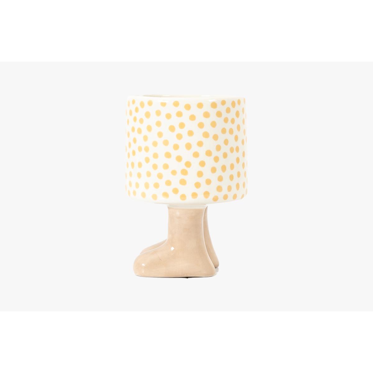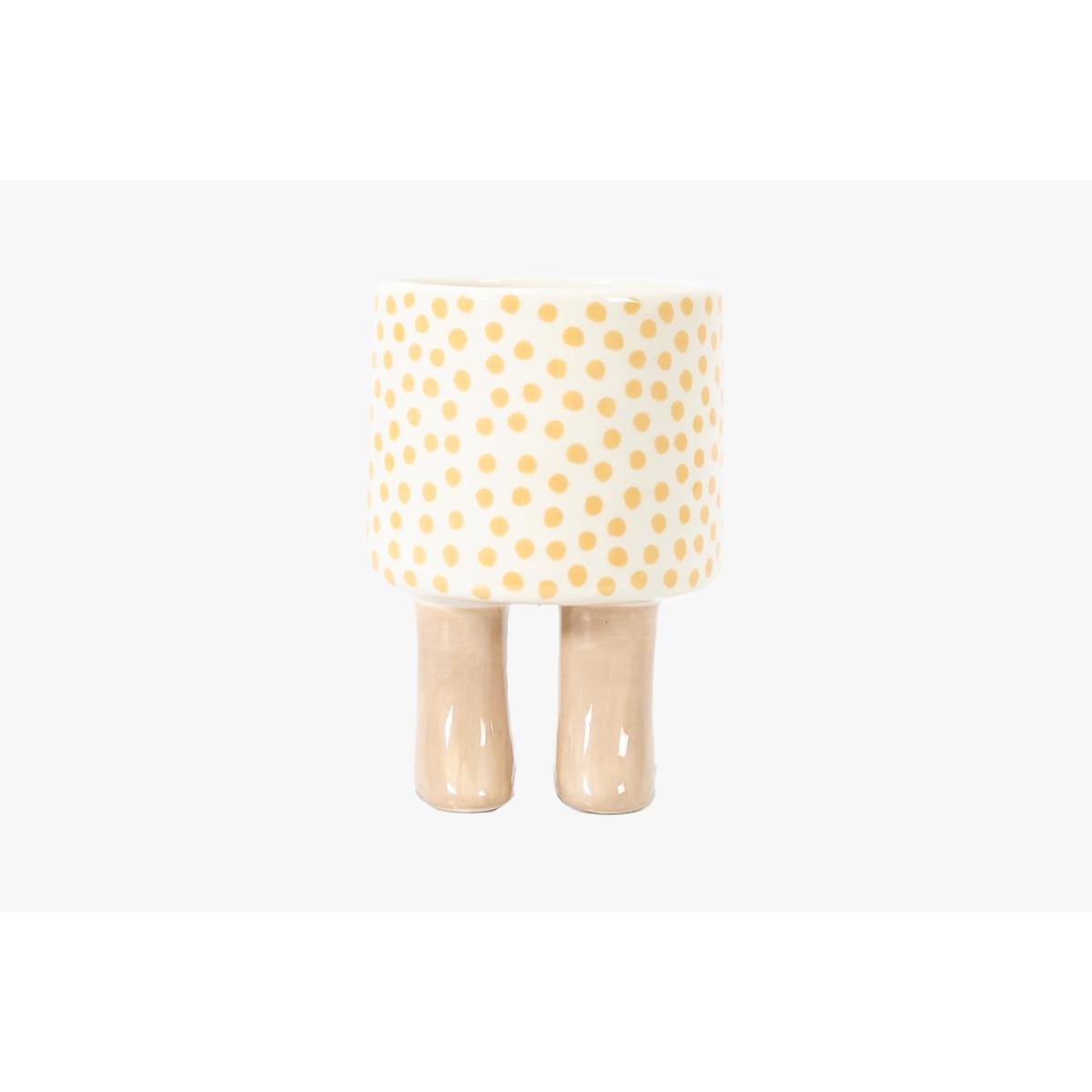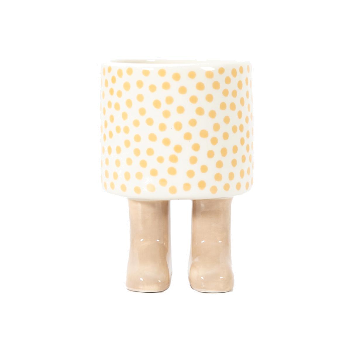 Let the Tootsie pot sweep you off your feet with its adorably cute charm. Make your plants super cute with this beige and white polka dot pot standing on a pair of little booted feet, perfect for adding character to your favourite real or faux plants.
