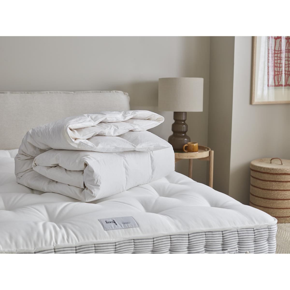 Our most luxurious duvet filled with top-notch Hungarian goose down by our skilled makers in Fife, Scotland. Lightweight, cloud-like comfort that's great for all seasons.