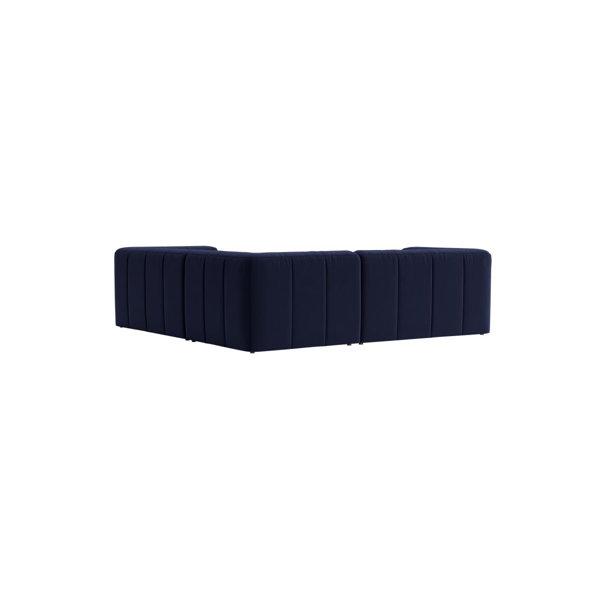 Top of the Blocks Medium Even Sided Corner Sofa in Pen Nib Blue Clever Velvet